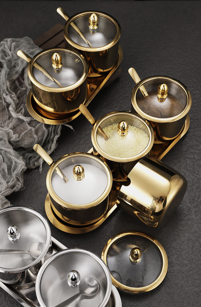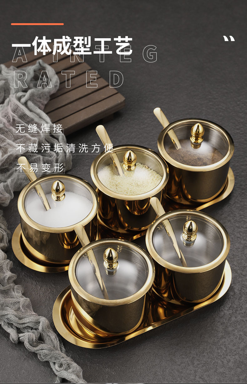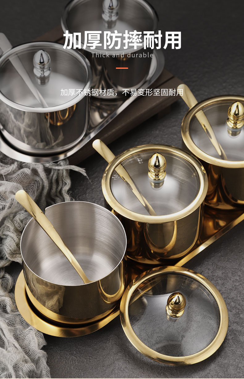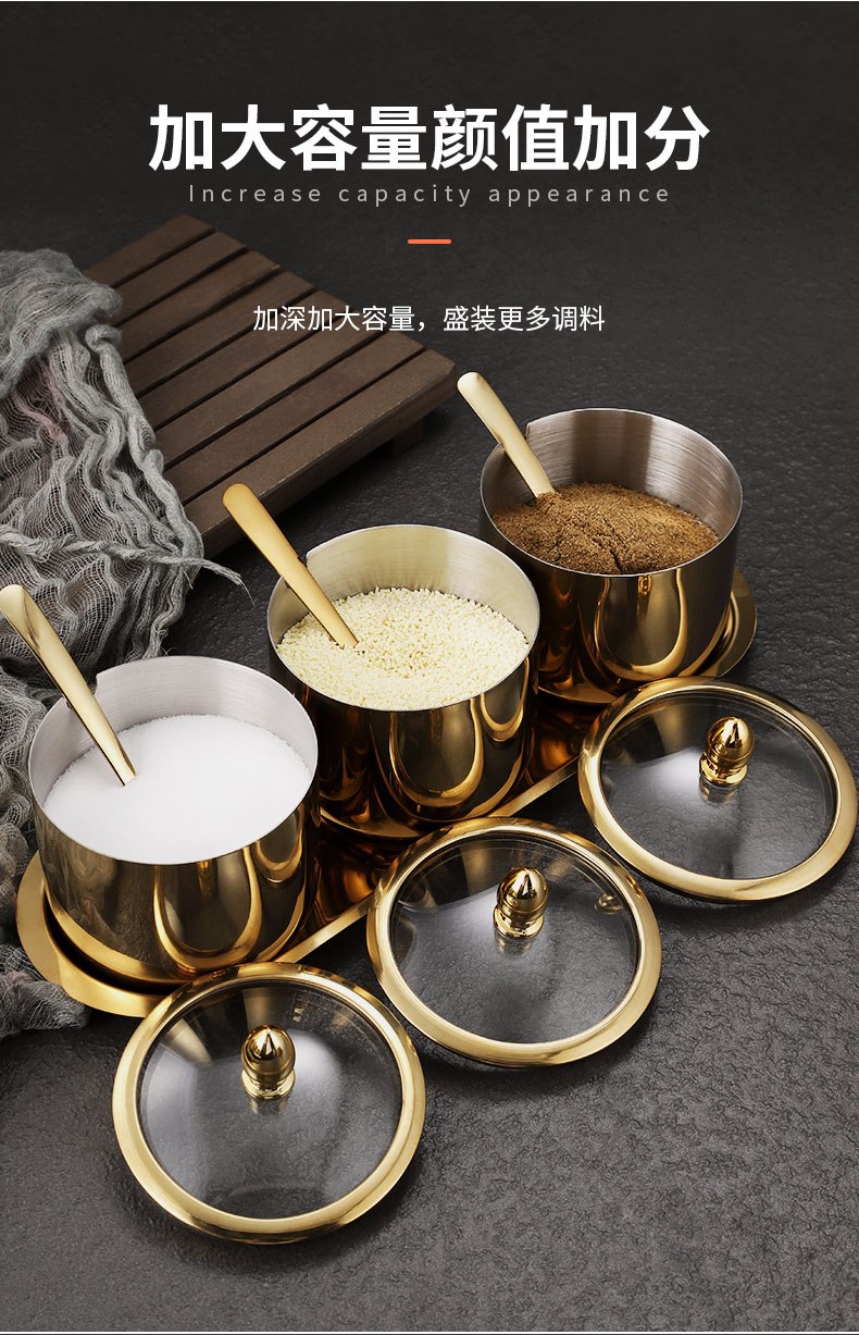 韓国式304ステンレス調味缶セット商用金色調味料箱調味料缶唐辛子油塩缶