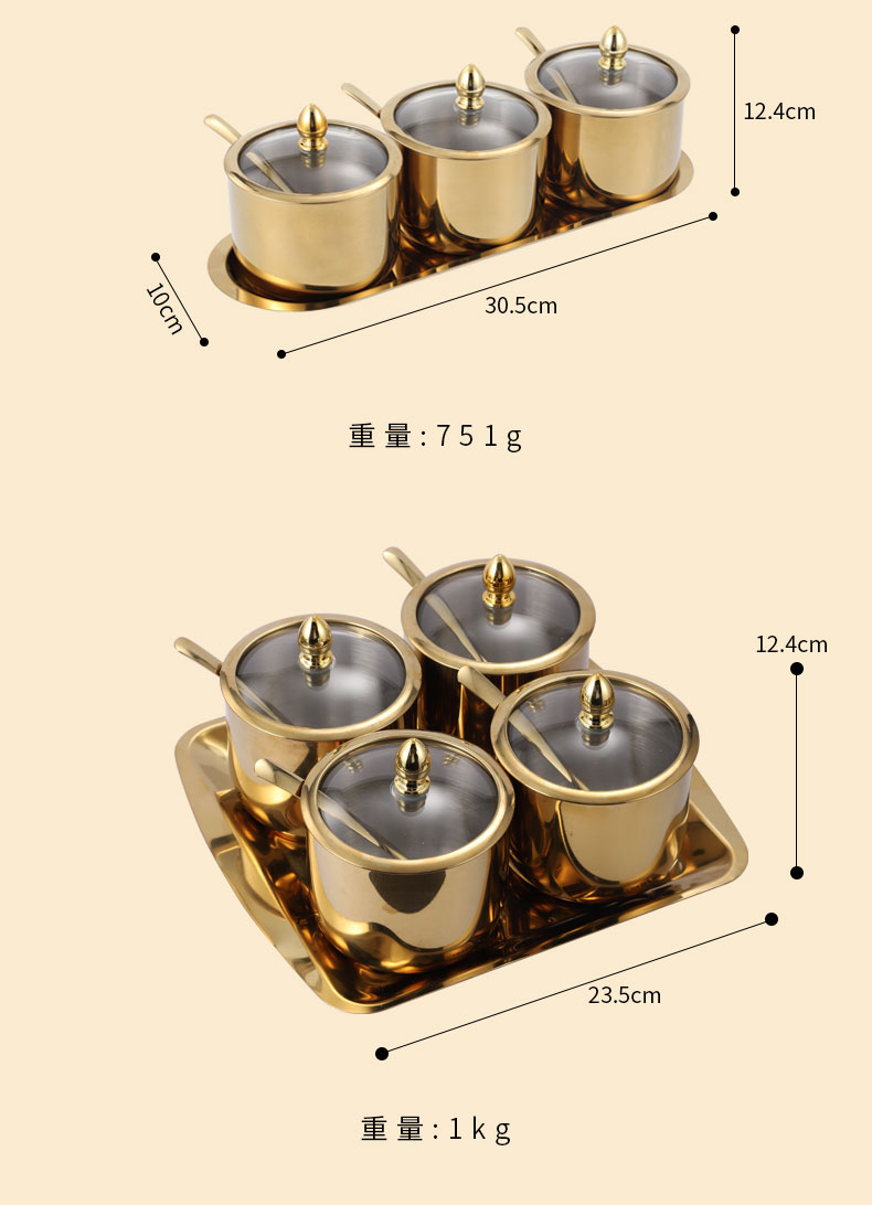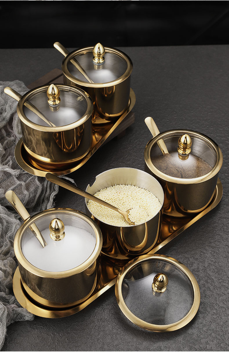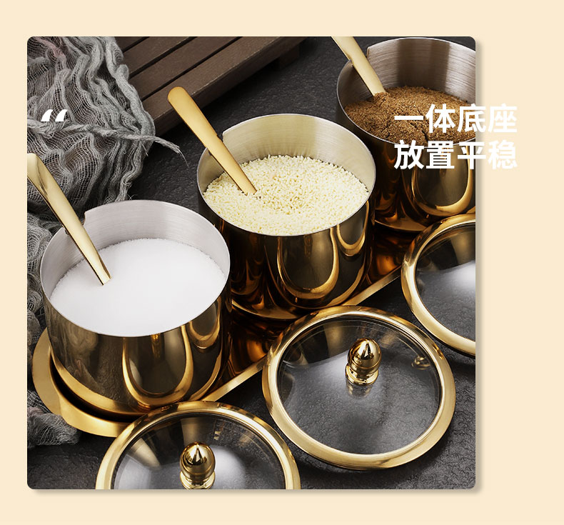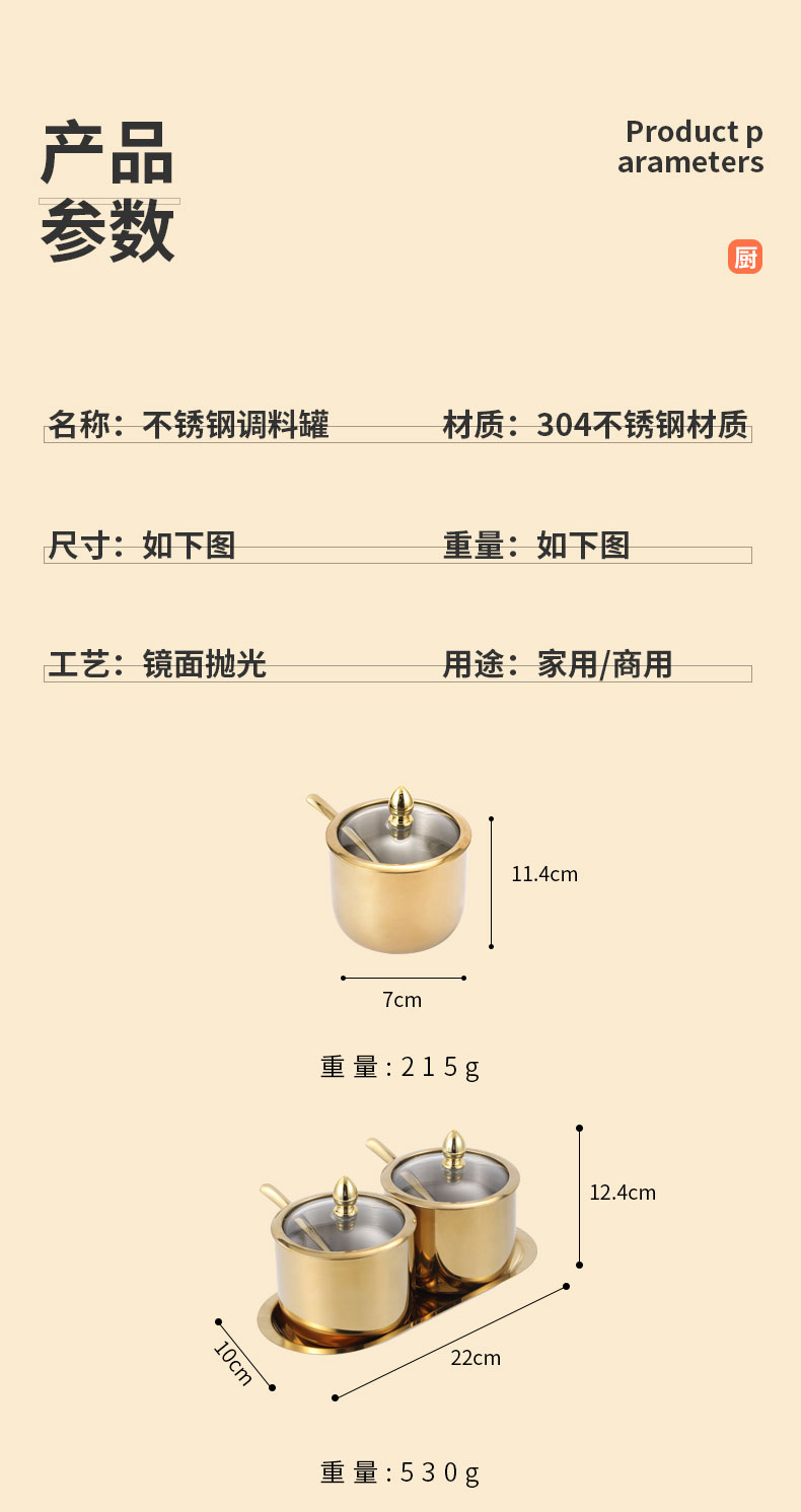 韓国式304ステンレス調味缶セット商用金色調味料箱調味料缶唐辛子油塩缶