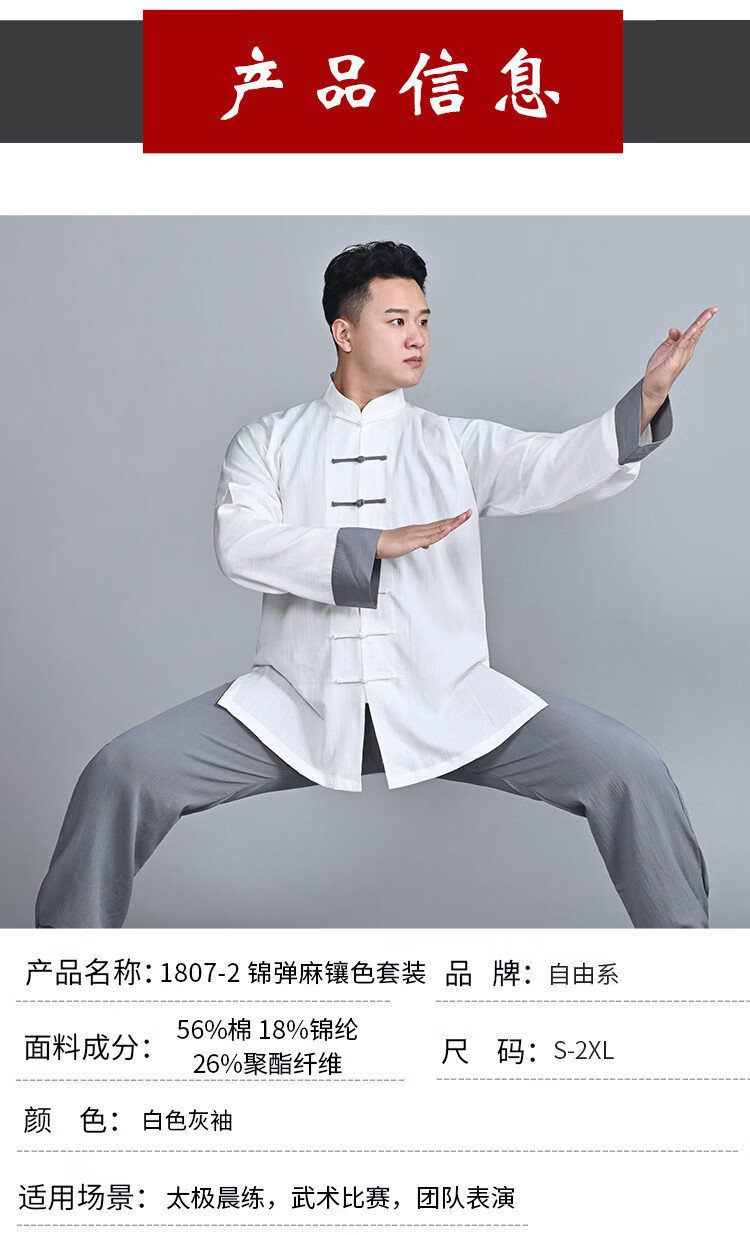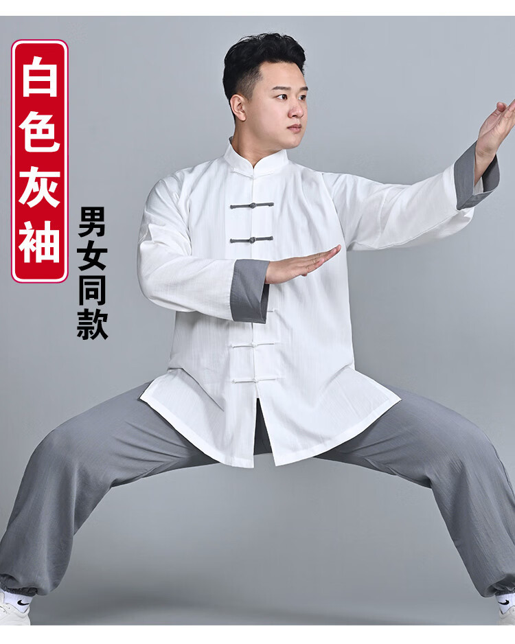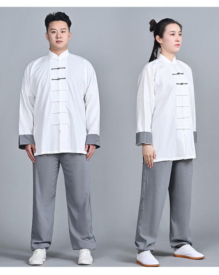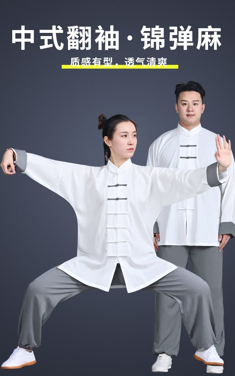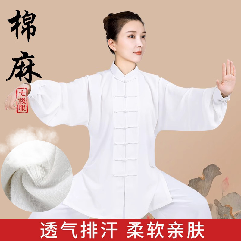 綿と麻の太極拳スーツ、トレーニングスーツ、高級春夏朝練スーツ、武道スーツ、卸売男性と女性のスーツ、長袖