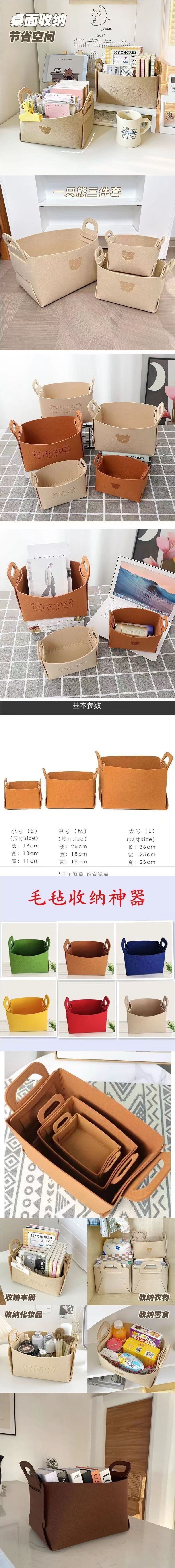 フェルト折りたたみ収納ボックスリビングデスクトップ雑食バスケット整理バスケット家庭用カート持ち手収納バスケット