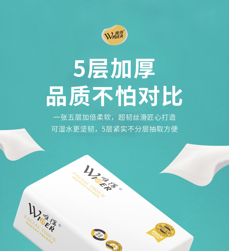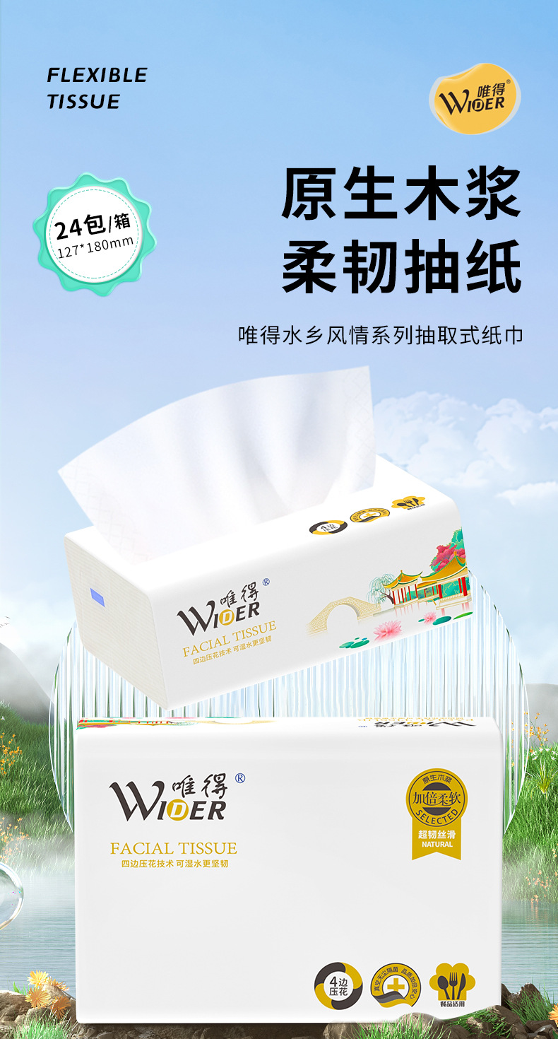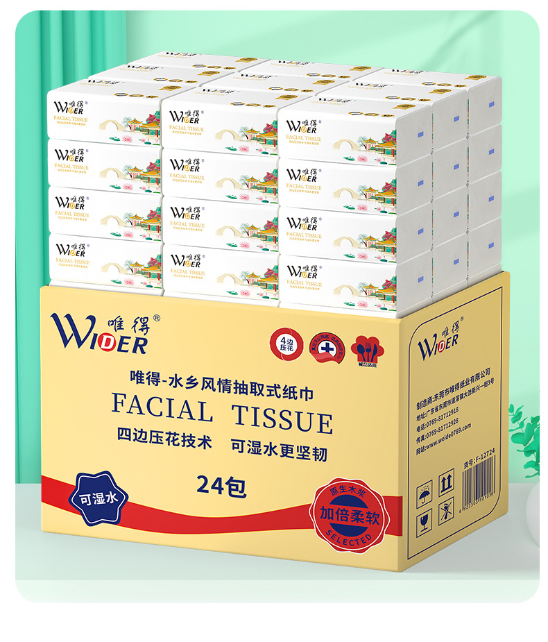 唯得抽纸水乡风情5层加厚抽纸整箱可湿水母婴柔软家用宿舍卫生纸