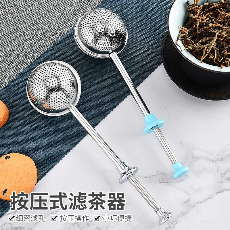 304不锈钢网茶球撒粉滤渣神器家用按压式手柄茶叶圆形过滤器茶叶