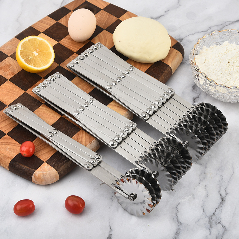 現品の多輪油条刀ステンレスのピザ刀の器の伸縮できるローラーのピザ刀の多機能油条切