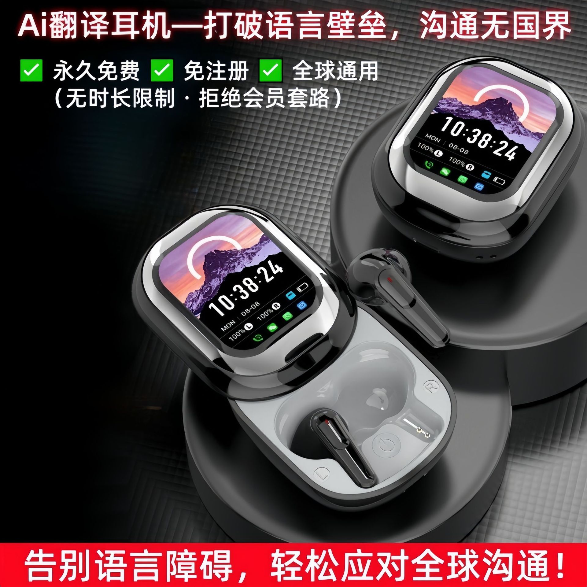 2025新款蓝牙耳机跨境Ai翻译滑盖无线翻译耳机滑盖设计触控屏跨境