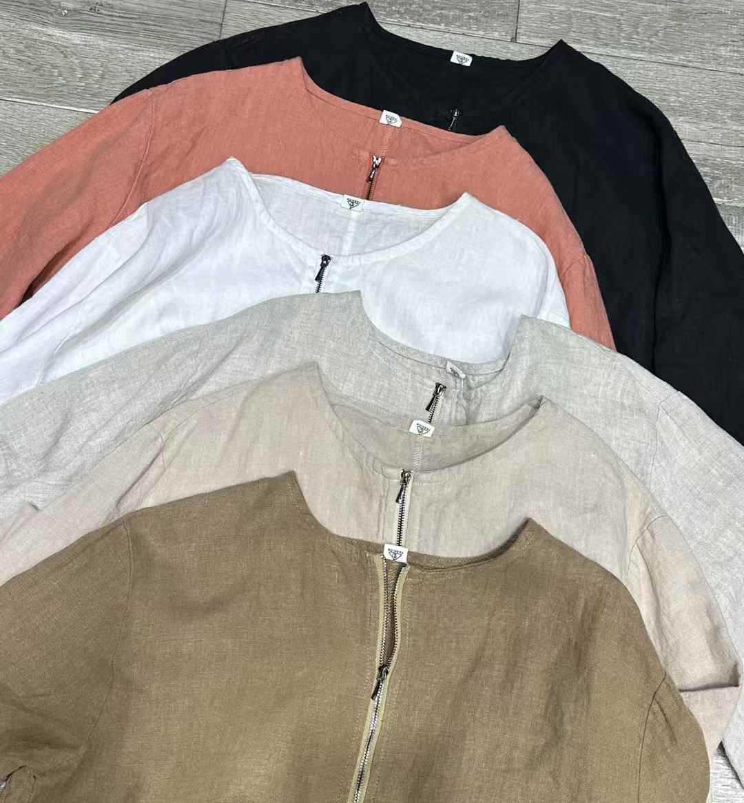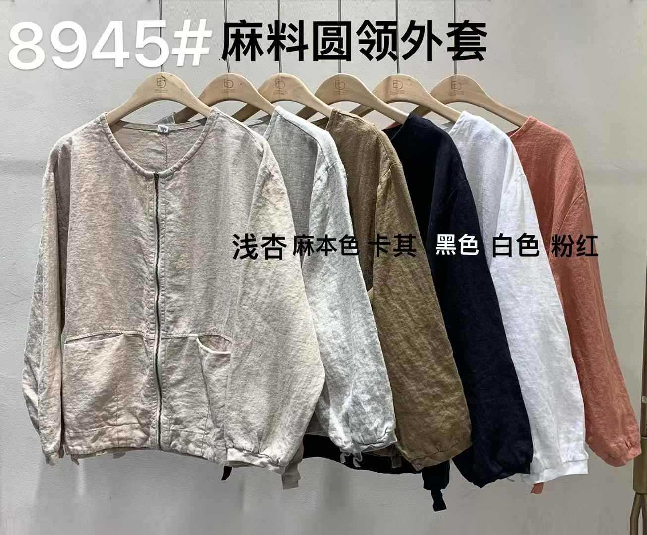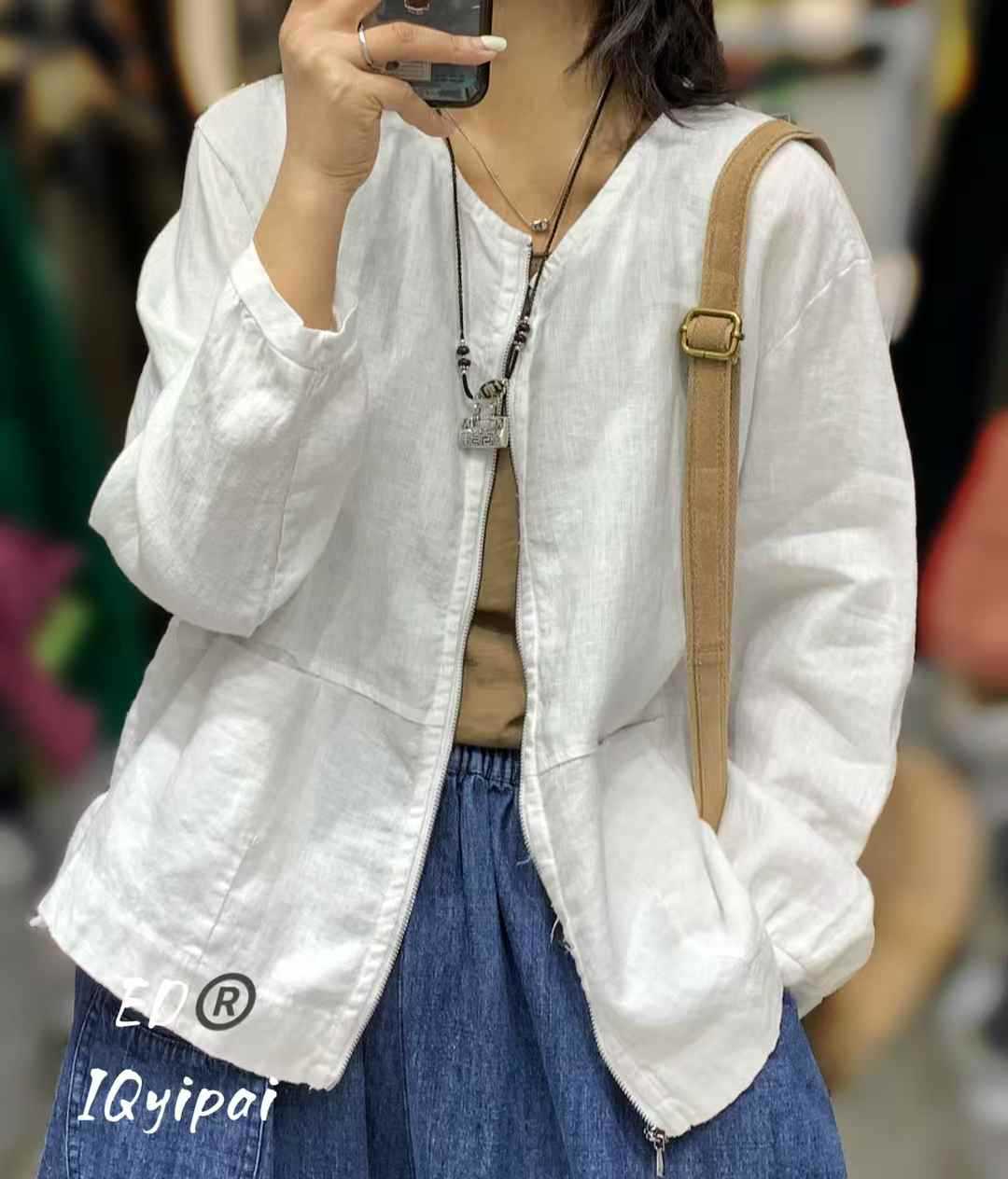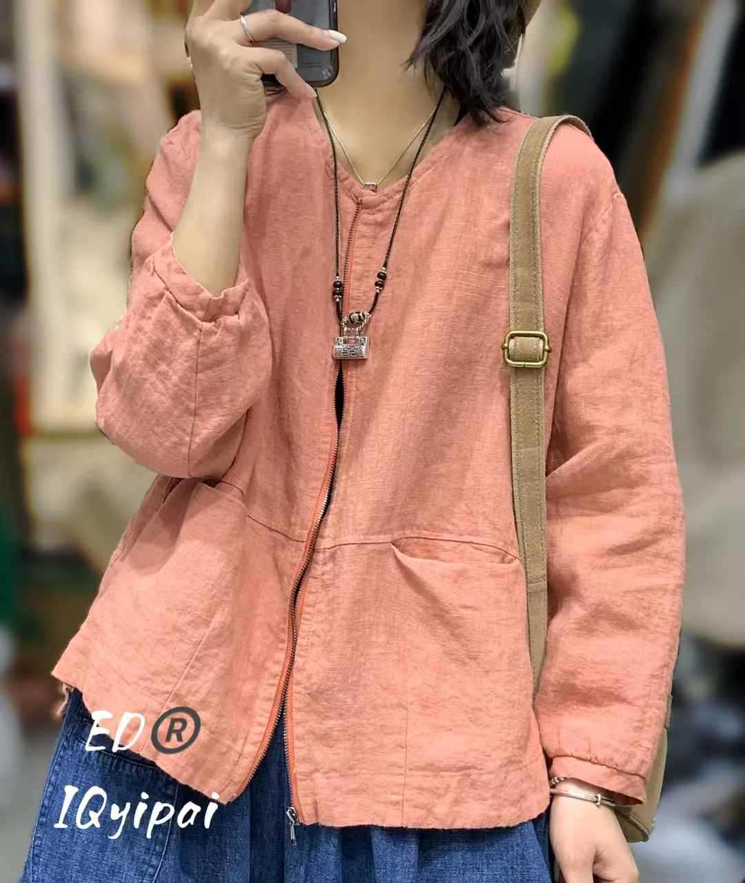 Ed8945麻の丸首のゆったりしたレトロなファスナーの長袖のコート2025の新型の文芸の気質のカーディガンの外で女性を掛けます。