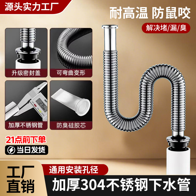 洗手盆下水管防臭排水管子洗脸盆台下水器配件不锈钢漏水塞池面盆