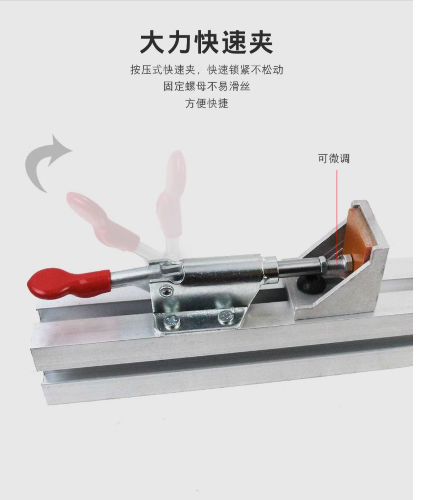 木工用バックボード、アルミ合金クイックポジショニングクランプ、スライドテーブルソー、伸縮プッシュロッド、バックボード付き木工用大型ボード切断