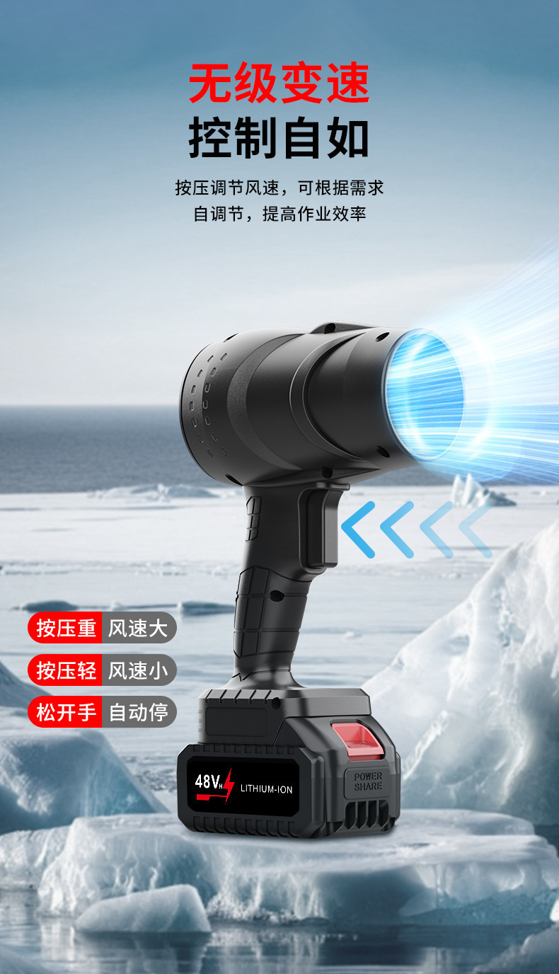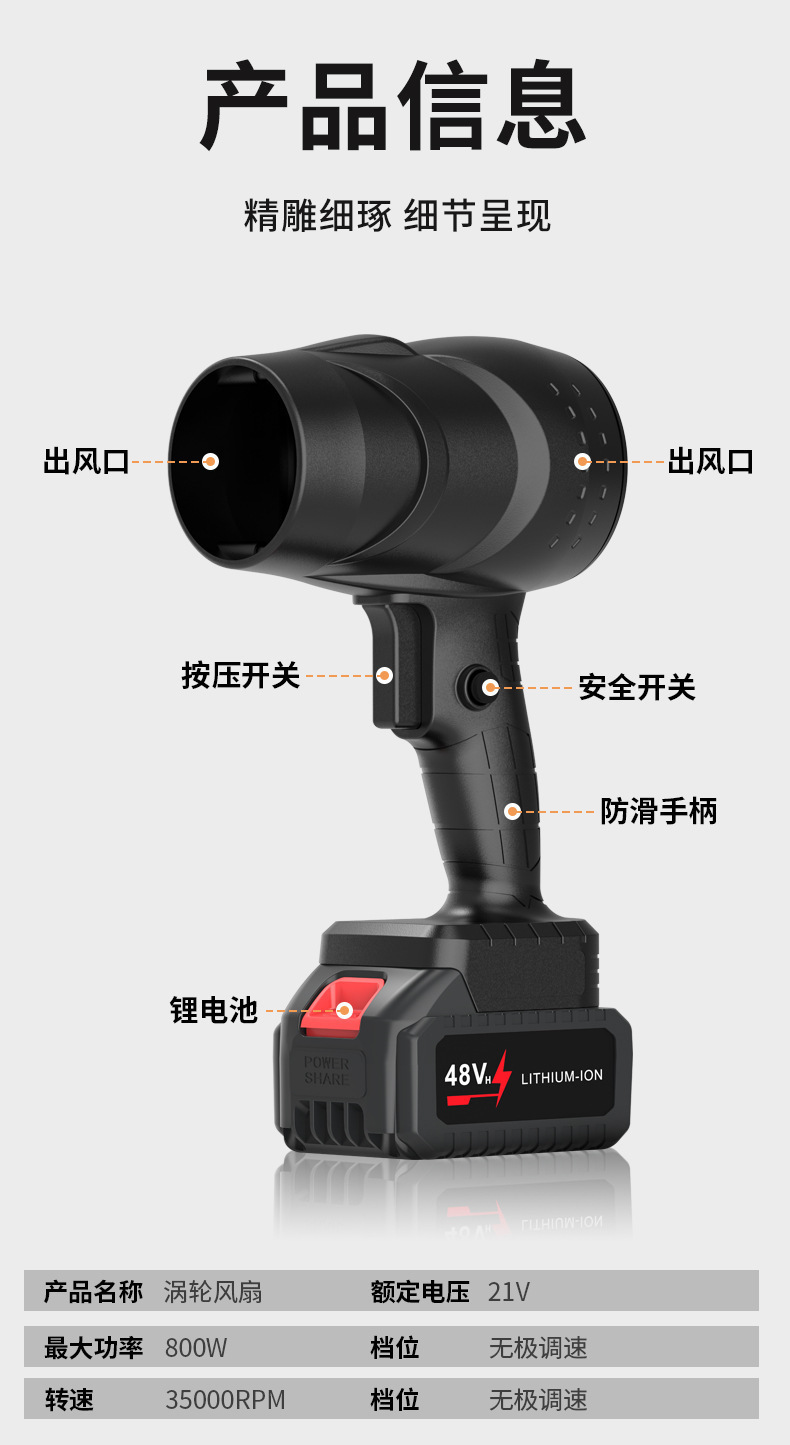跨境厂家强力风扇吹尘机吹雪锂电暴风机涡轮吹风机大功率鼓风机