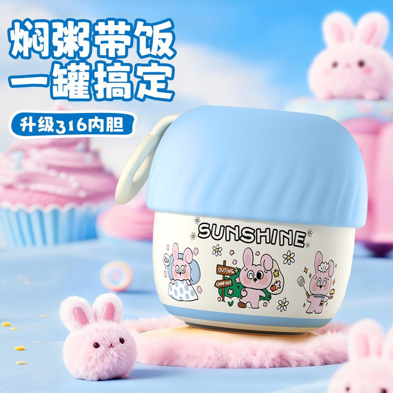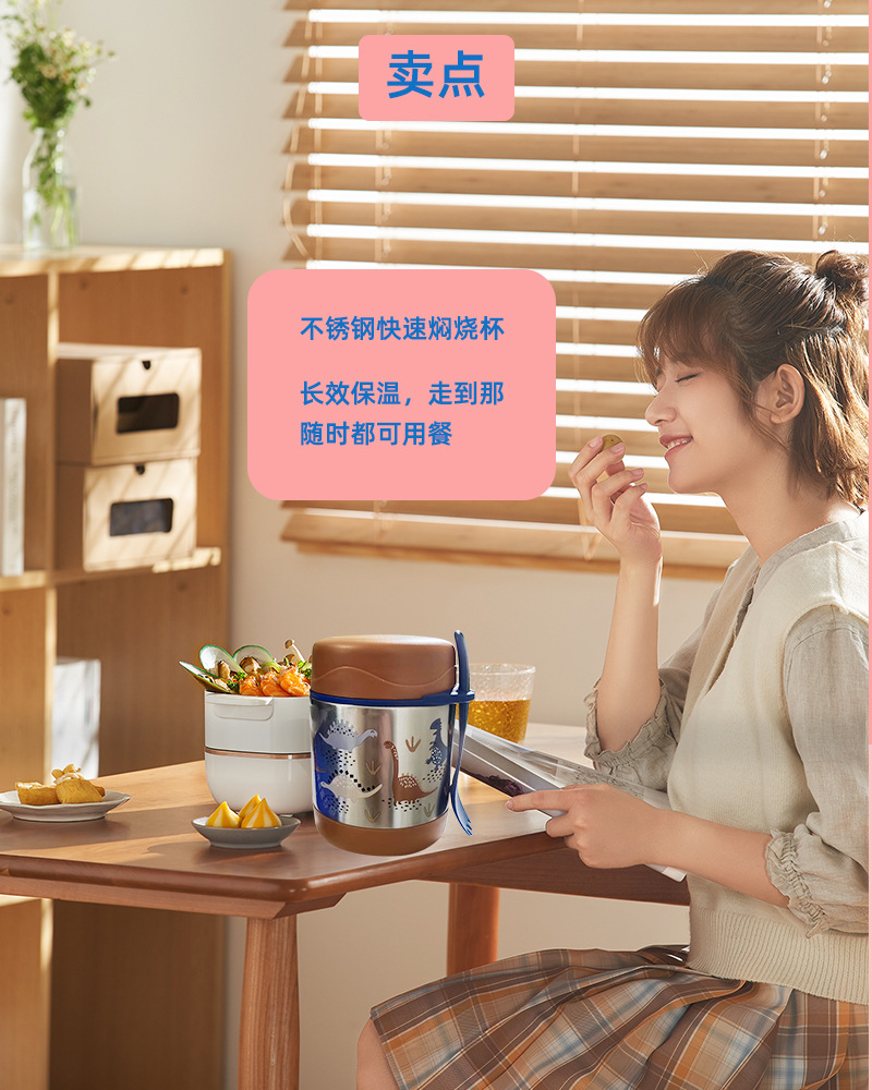 高颜值便携大容量焖烧杯不锈钢饭盒女户外上班家用煲银耳羹保温杯