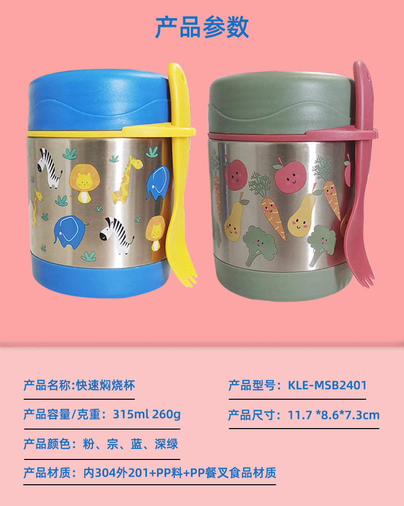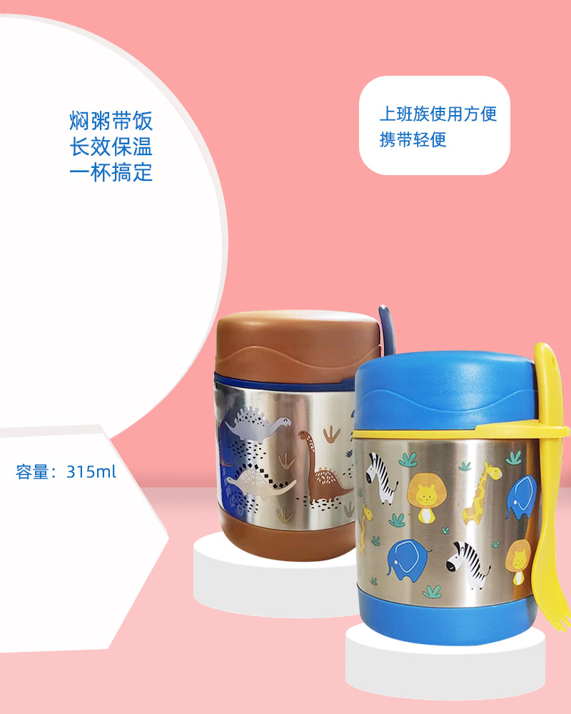 304不锈钢早餐杯便携带勺保温餐杯汤罐密封粥杯银耳焖烧杯带提手