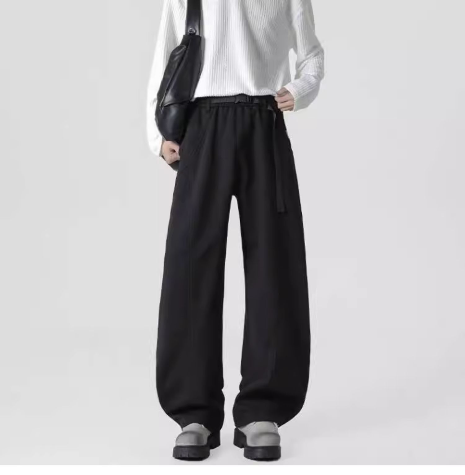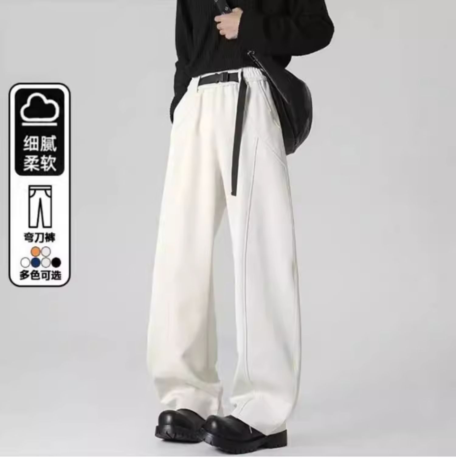 夏の新しいアメリカンスタイルのドレープ感のある大きいサイズのメンズシミターパンツ、ゆったり、柔らかく多用途のカジュアルパンツ、トレンディな薄手のパンツ