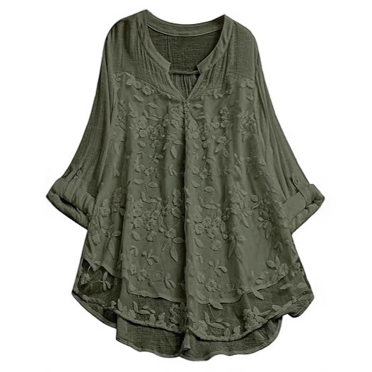 法式小众 气质优雅重工刺绣衬衫女长袖V领花卉绣花女士衬衣夏新款