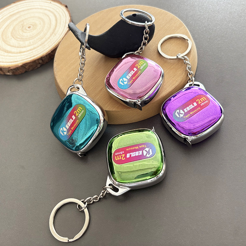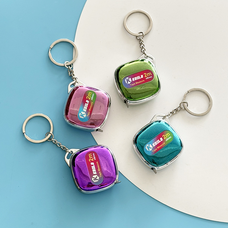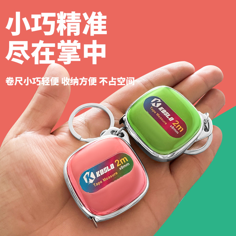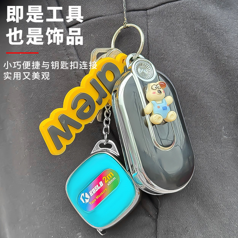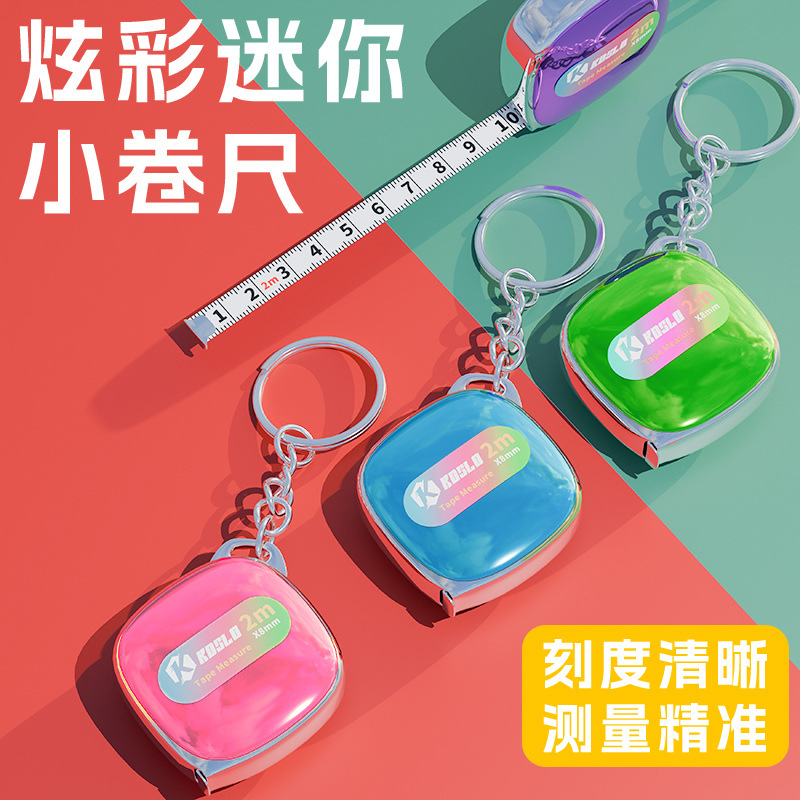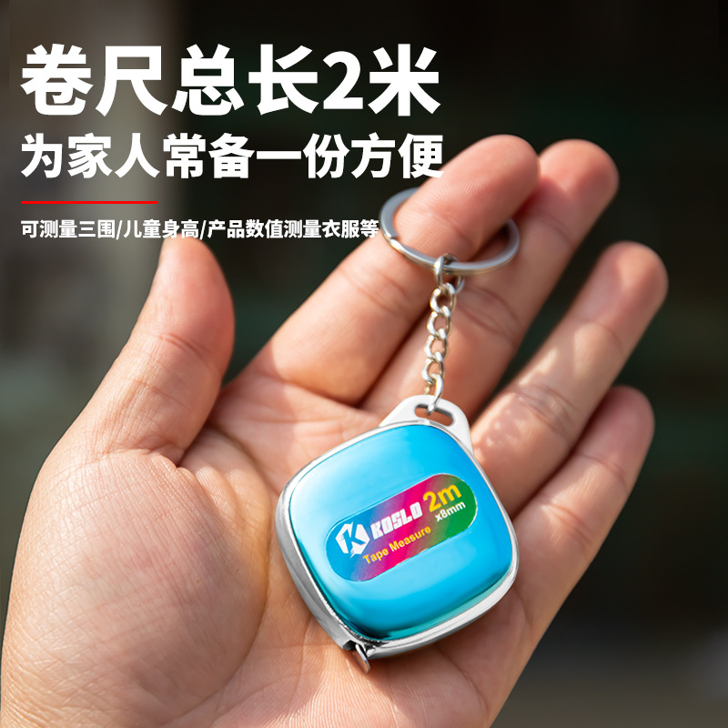 新品设计感礼品尺2M小卷尺迷你钥匙扣钢卷尺公英制家用测量小尺子