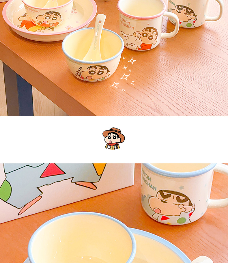 クレヨンしんちゃん 食器ボウルと皿セット 2025 新しい漫画かわいい一人用食器新築祝いセラミックボウル