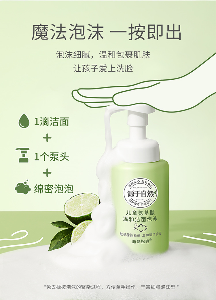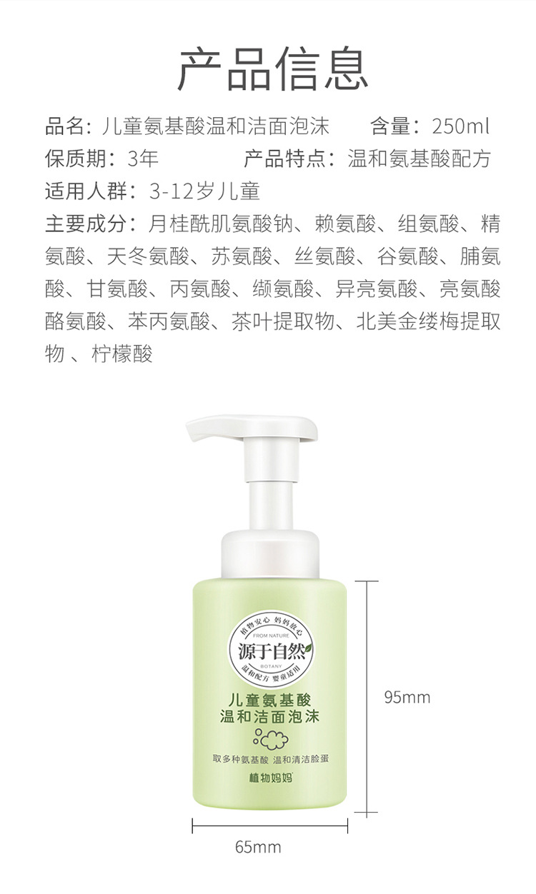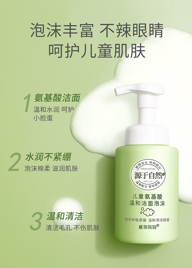 植物のお母さんの3-18歳の子供の温和で清潔な保湿の石鹸基のアミノ酸の泡の洗顔料がありません。