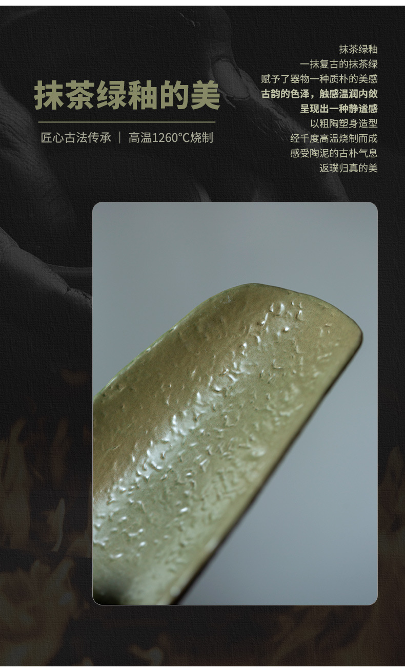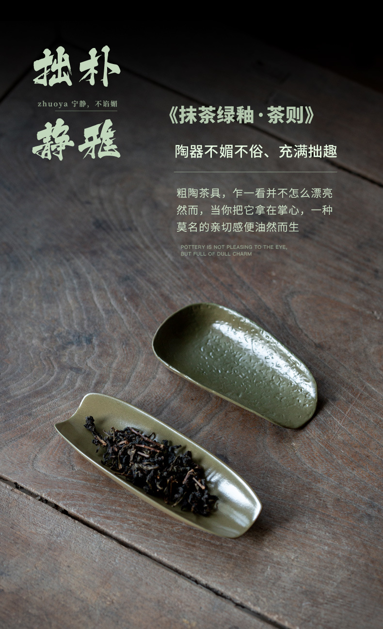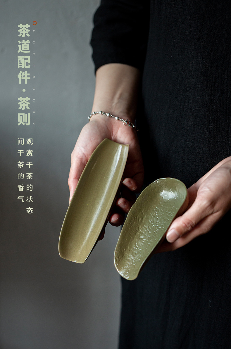 抹茶緑釉竹茶器中国風レトロ陶器茶道アクセサリー茶荷茶舟 2 点セット