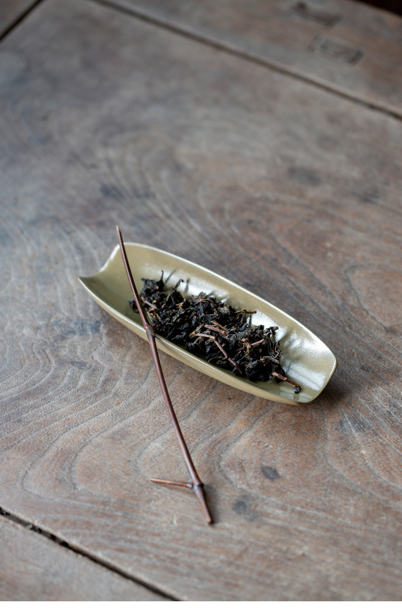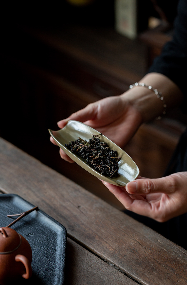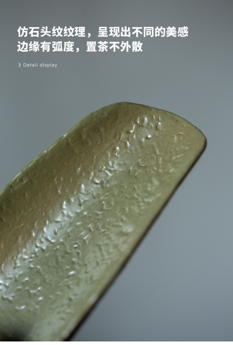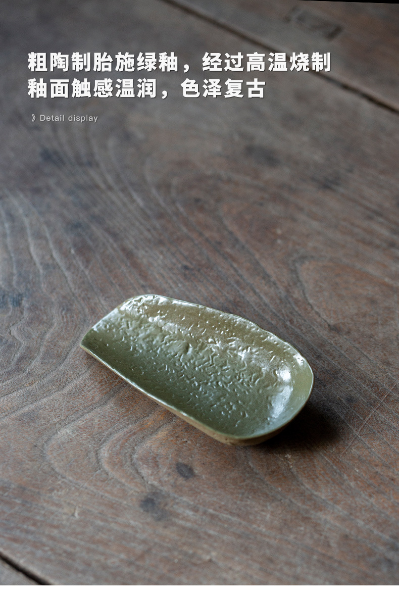 抹茶緑釉竹茶器中国風レトロ陶器茶道アクセサリー茶荷茶舟 2 点セット