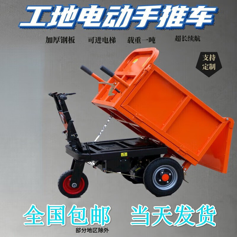建設現場の電動灰斗車は三輪車を手押しして車を運びます。