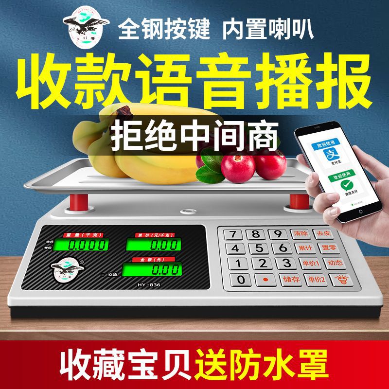 【精確音声報数】大紅鷹電子秤商用音声高精度充電30kg家庭用小型0.