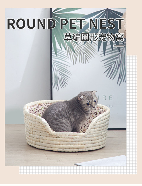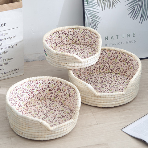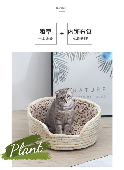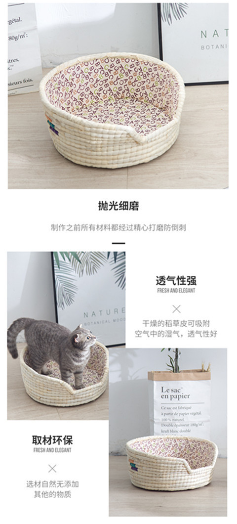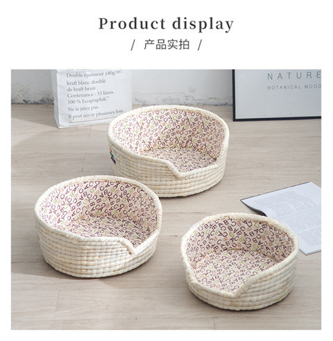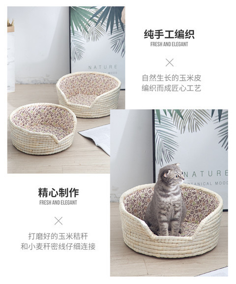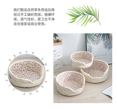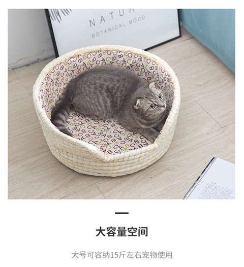 2025 新猫の巣手作り籐ペット用品小型犬テディハウスマットオールシーズンインターネット有名人
