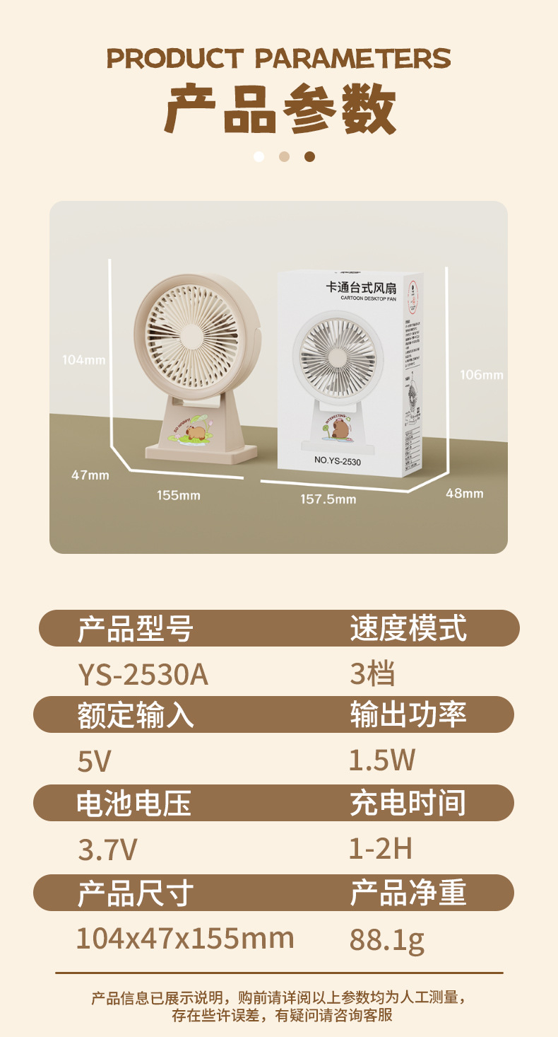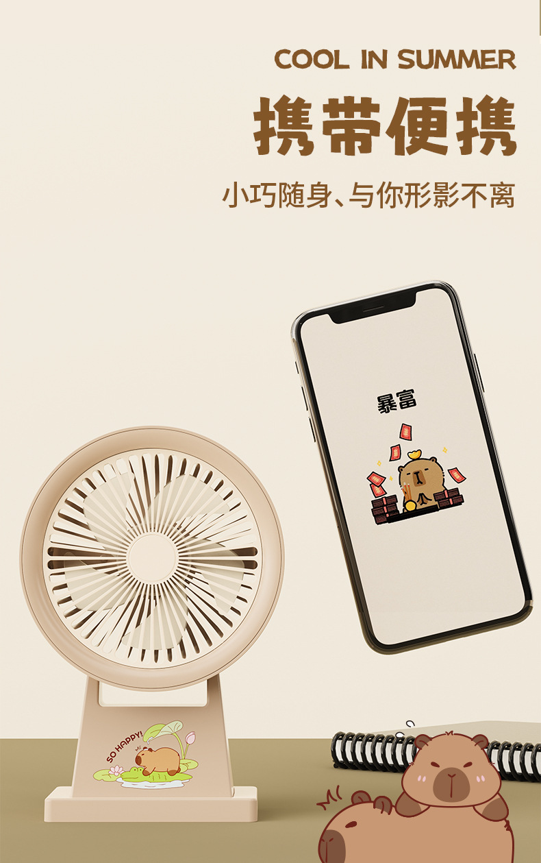 2025新型萌えペット肥うさぎミニデスクトップファンUSB充電衝突色結合携帯デスクトップファン