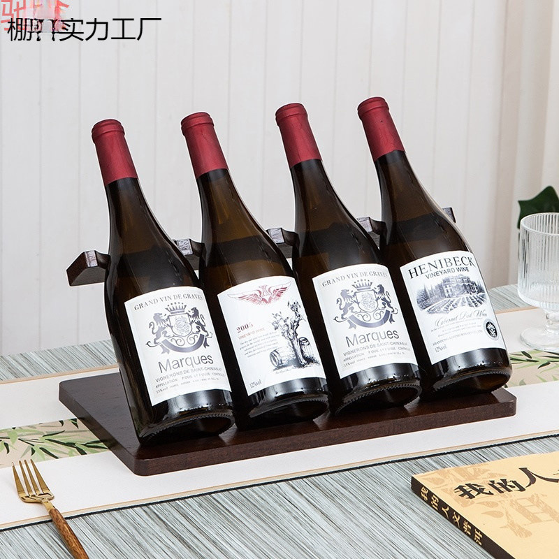新しい無垢材ワインラックワインキャビネットシンプルな赤ワインディスプレイラックラバーウッド商業レトロワインラック装飾品無料