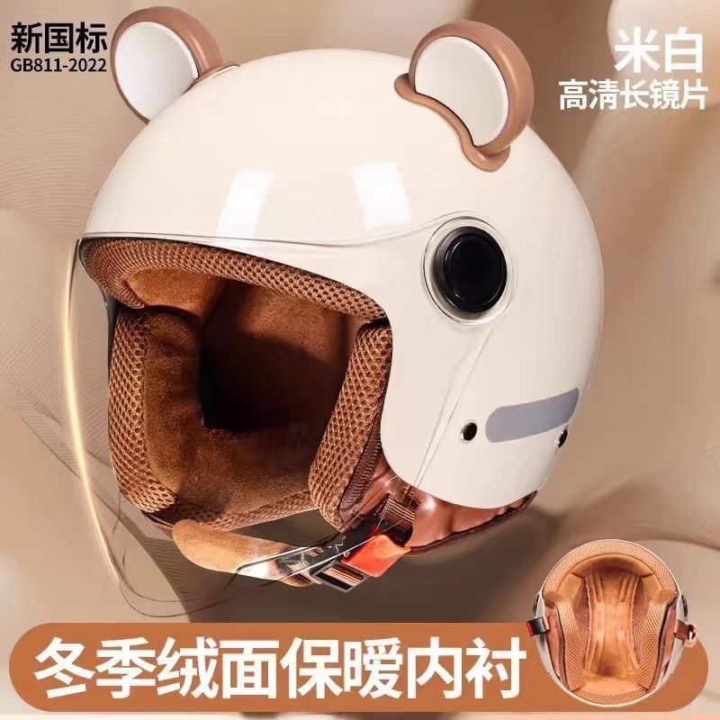 国家標準認定電気自動車ヘルメット女性用冬四季オートバイハーフヘルメット防曇暖かい安全帽子