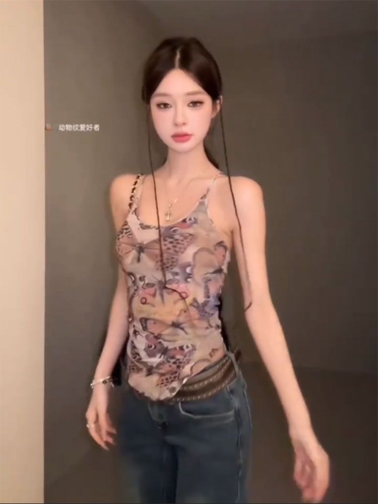アウターウェア純粋な欲望ヨーロッパとアメリカのデザインの女性用キャミソール夏不規則な小さなインナーセクシーな季節痩身トップホットガール