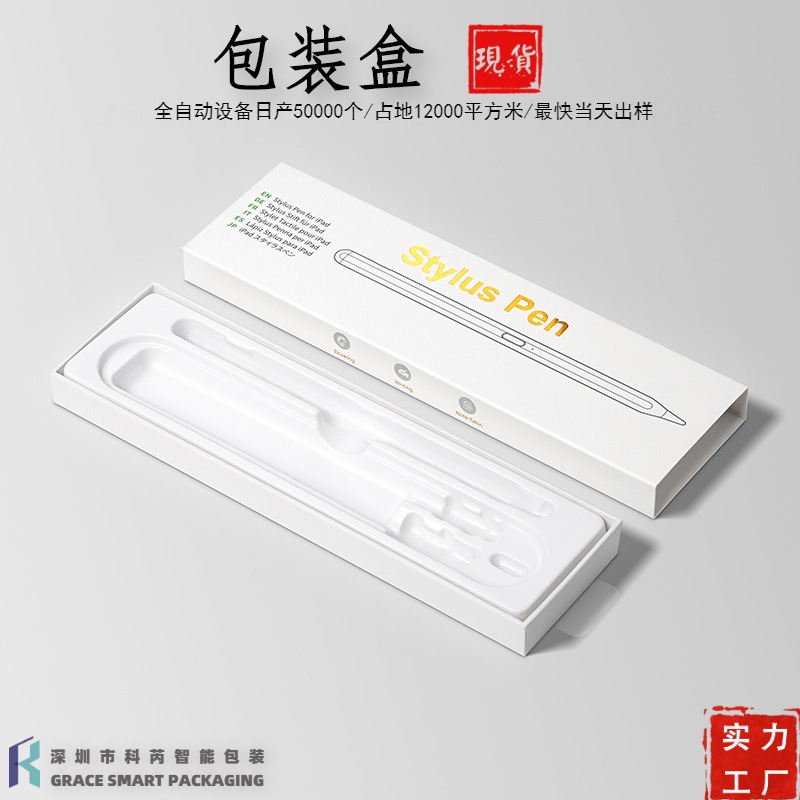 电容笔包装盒现货批发抽屉盒iPad电容笔吸塑套装抽拉式白卡纸盒