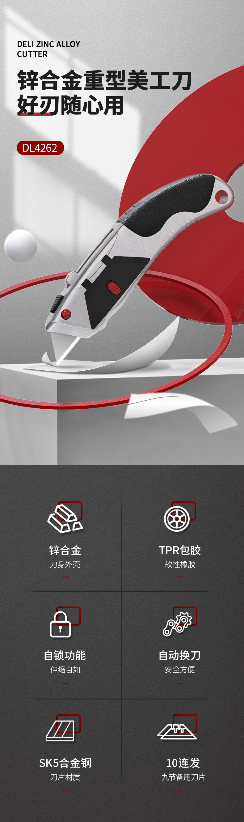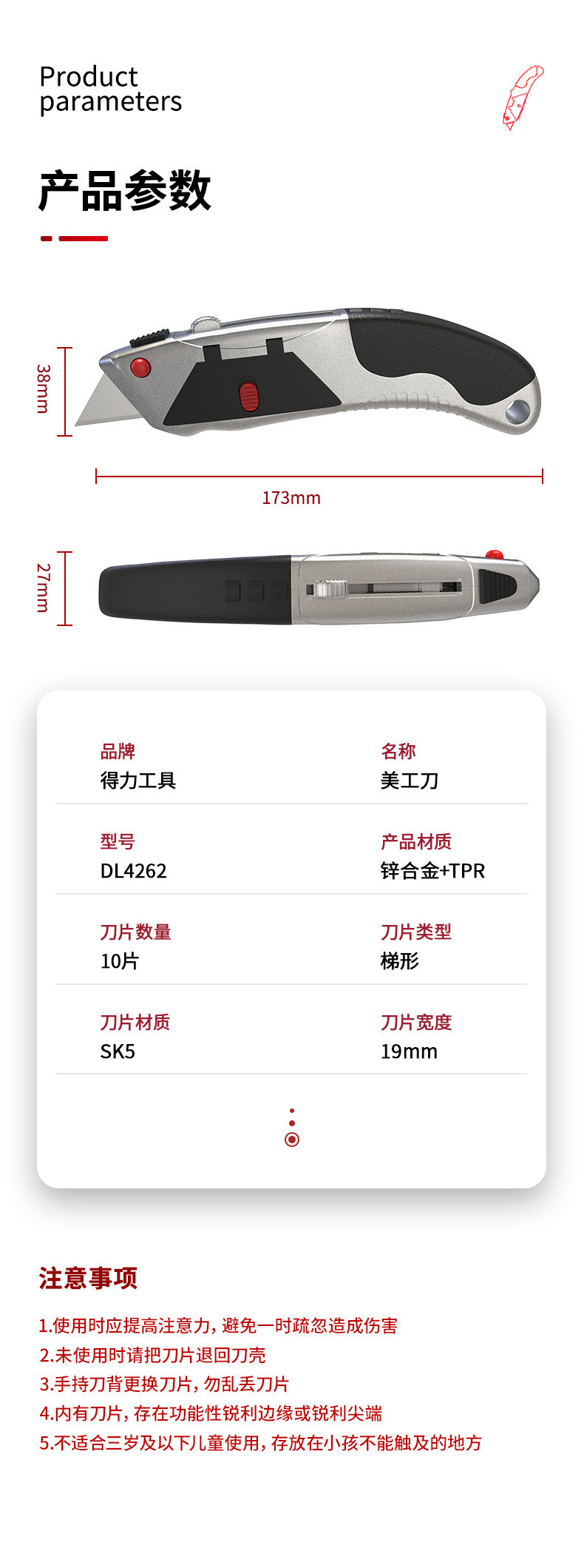 デリ DL4260 アートナイフ 大型ナイフ 壁紙切断 紙開きナイフ アルミ合金アートナイフ