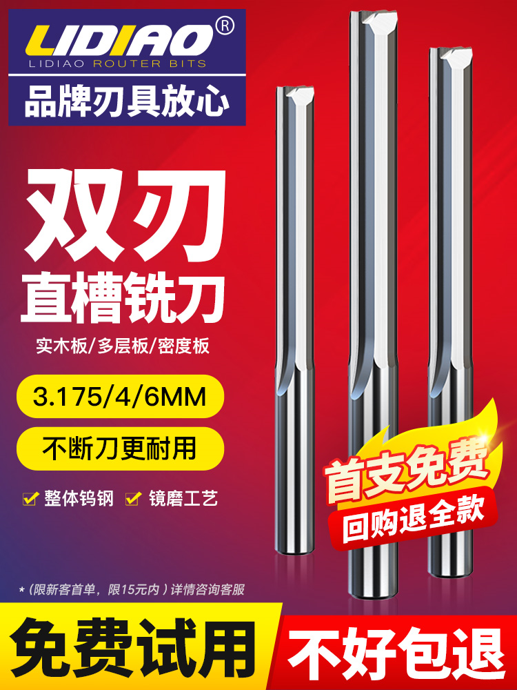 Kt 3.175双刃直溝フライス4/6mmカッター大工板溝入れ直刃nc彫刻機カッター