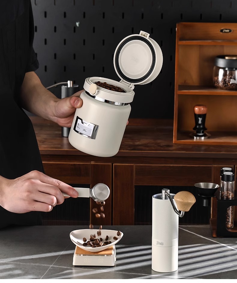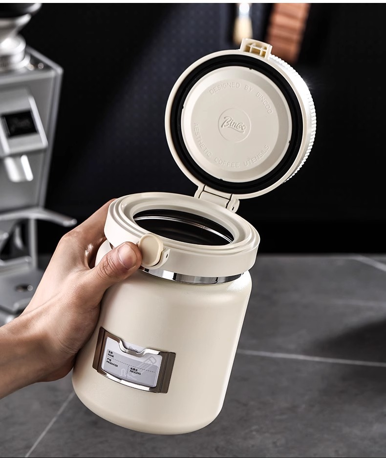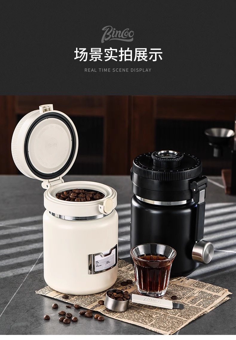 Bincooコーヒーシール缶押し真空引きコーヒー保存缶304ステンレス日付記録貯蔵タンク