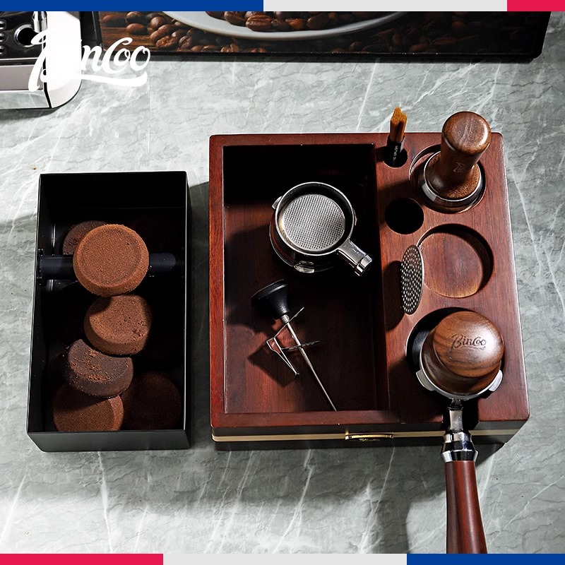 Bincooコーヒー圧粉器胡桃木多機能作業板ベースコーヒーハンドル充填布粉収納板