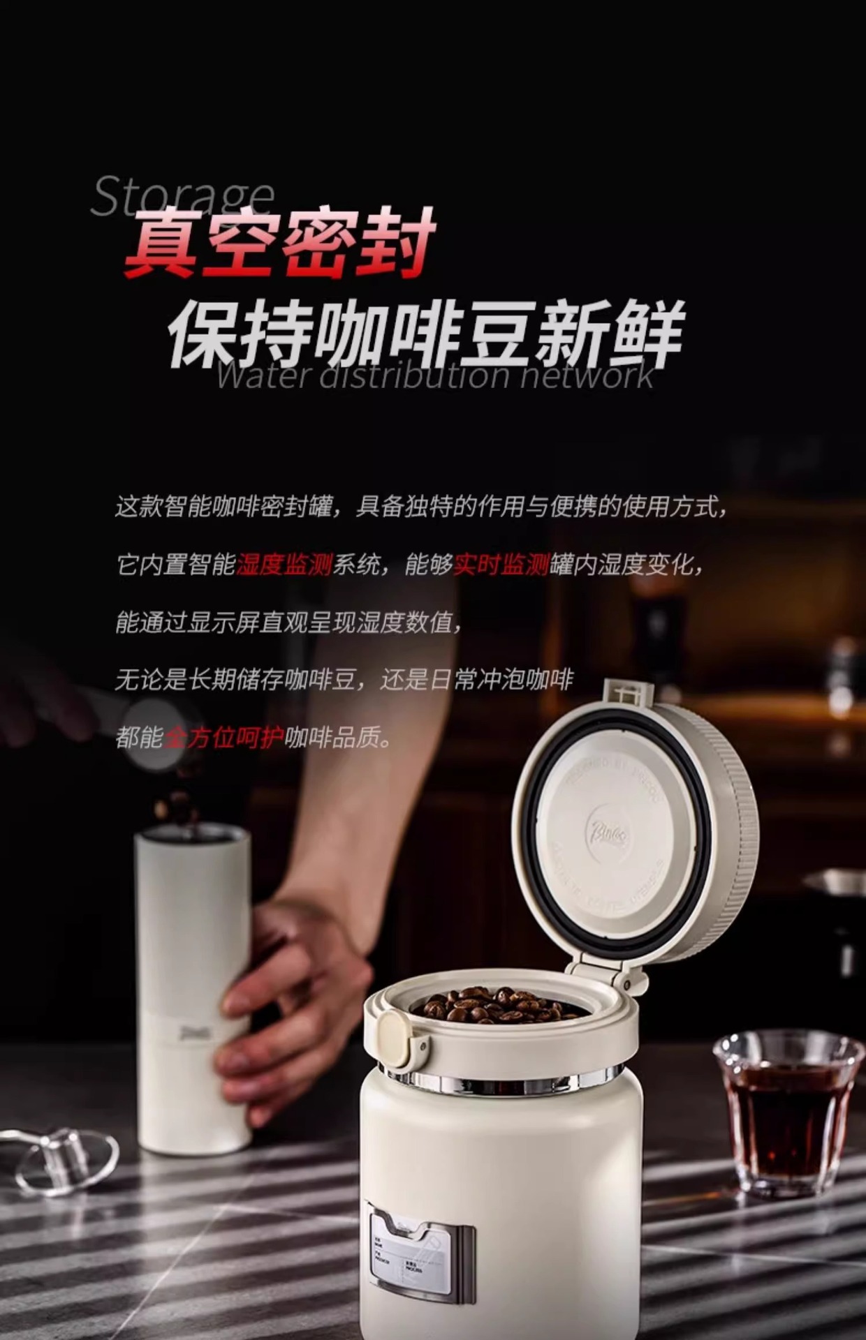 Bincoo コーヒー豆密封缶真空コーヒー粉保存缶湿度監視食品グレード二重層保存缶