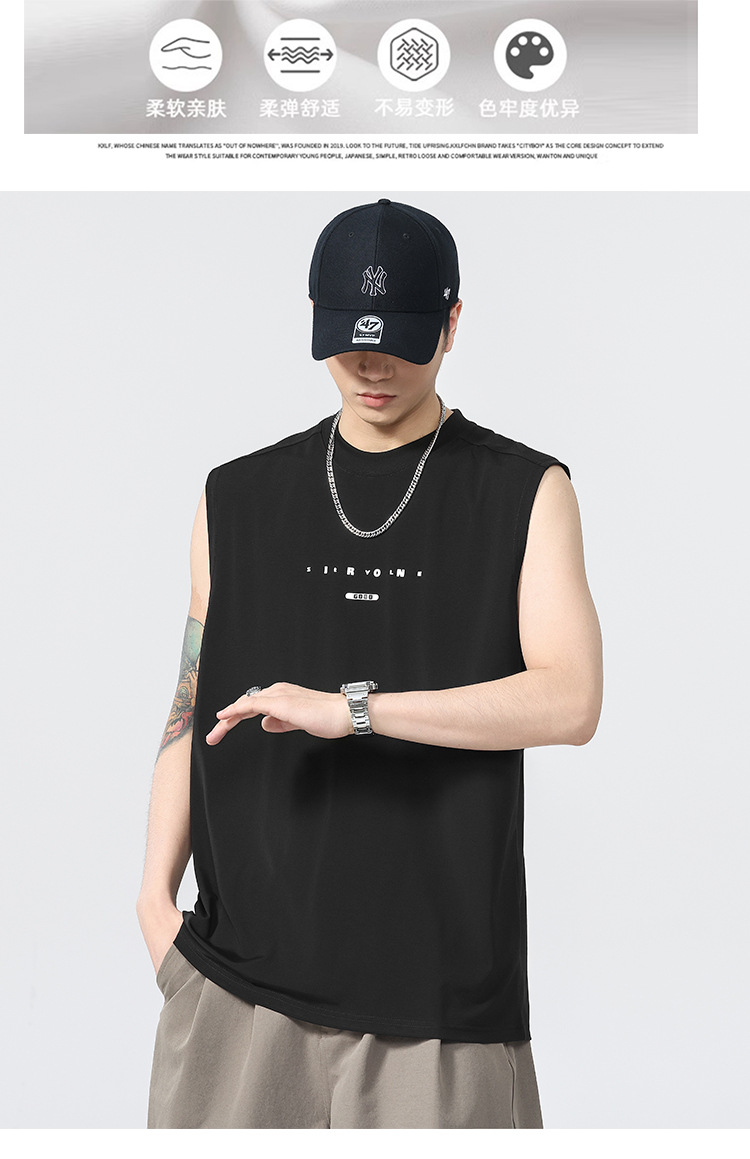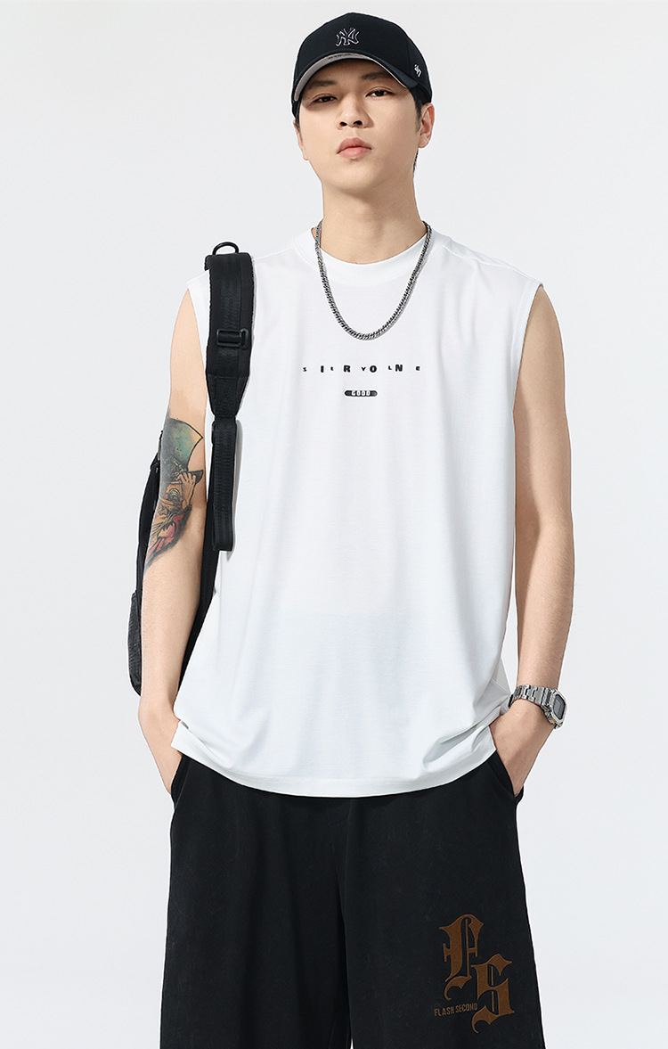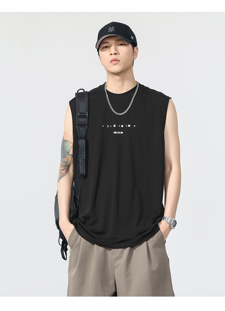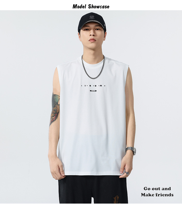 アメリカのトレンドブランド クールベスト 半袖 メンズ 2025 夏 薄手 ゆったり 大きいサイズ スポーツ 吸汗性 ノースリーブ Tシャツ