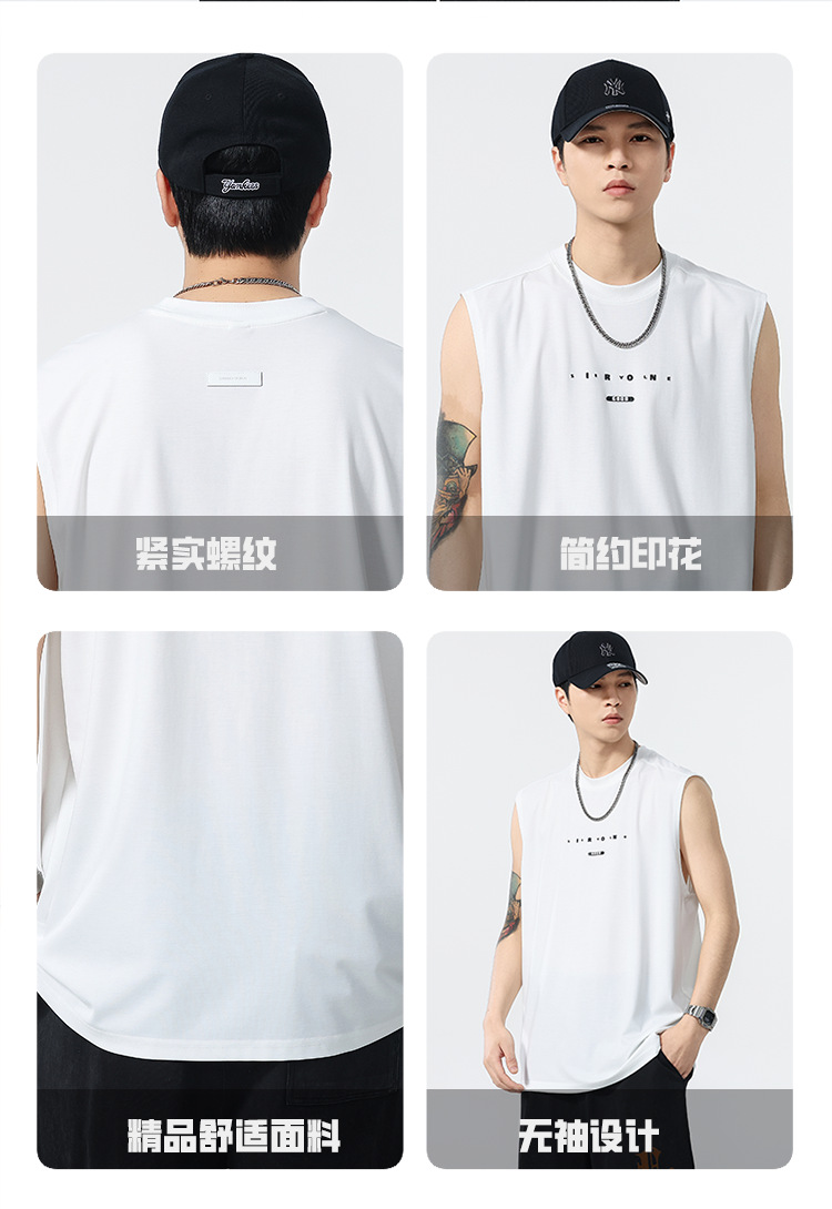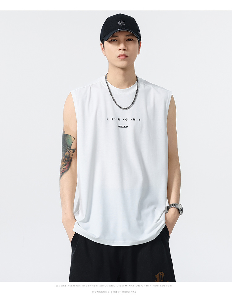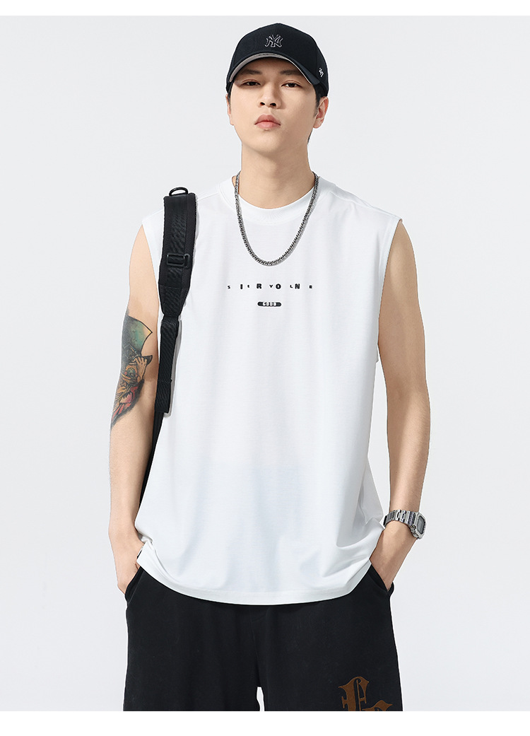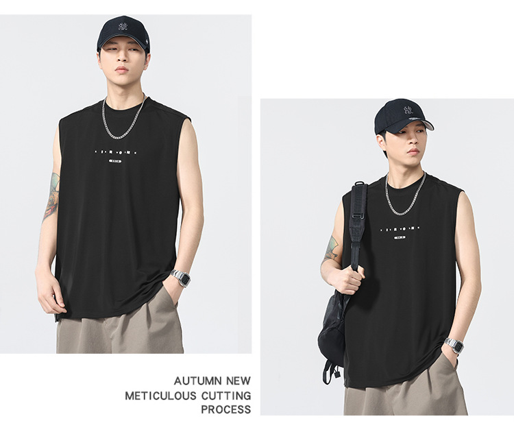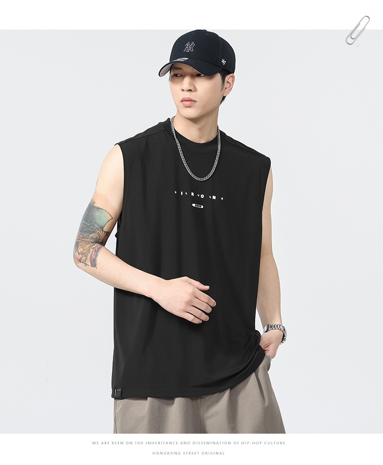アメリカのトレンドブランド クールベスト 半袖 メンズ 2025 夏 薄手 ゆったり 大きいサイズ スポーツ 吸汗性 ノースリーブ Tシャツ