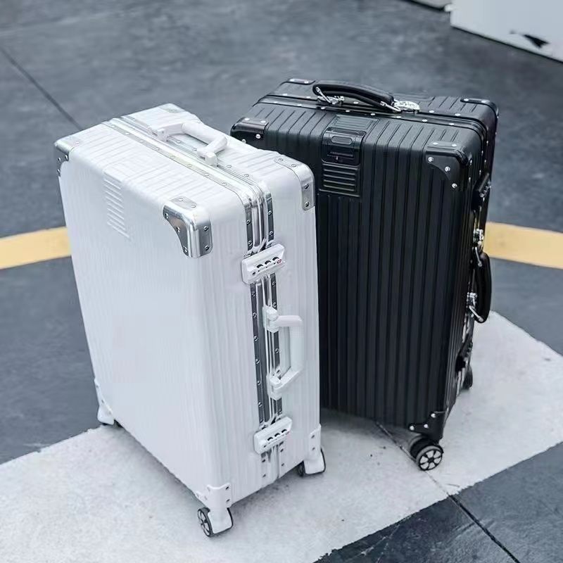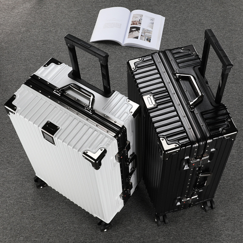 女性学生向けアルミフレーム付きトランク型スーツケース、男性用パスワード付きキャリーバッグ、大容量、万能ホイール付き