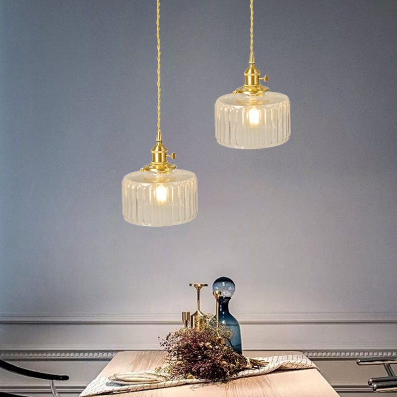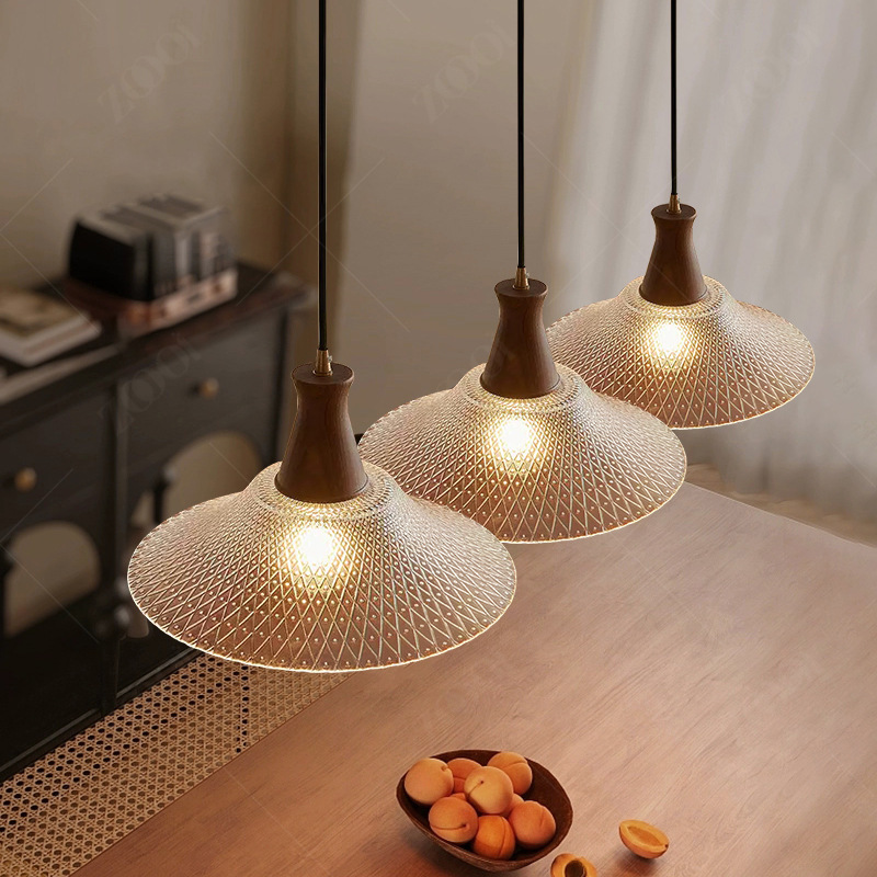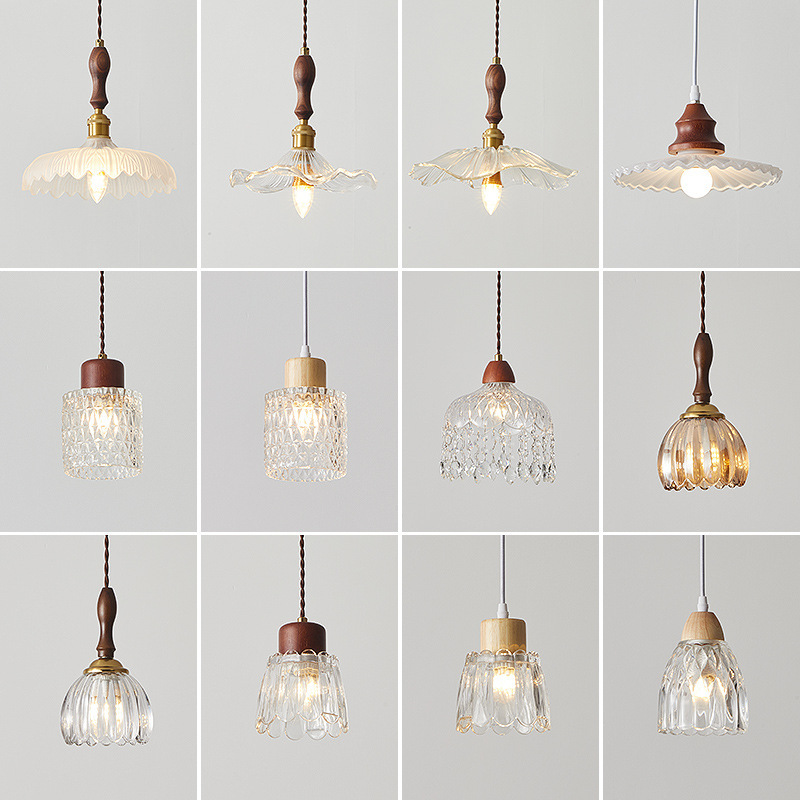 クルミ材色のガラス製ベッドサイドペンダントライト、アメリカンレトロな寝室用ランプ、レストラン、カフェ、バーカウンター用シングルヘッドランプ