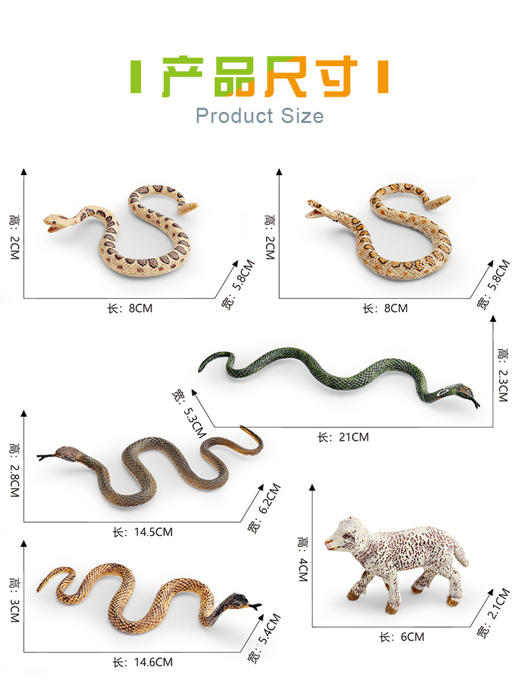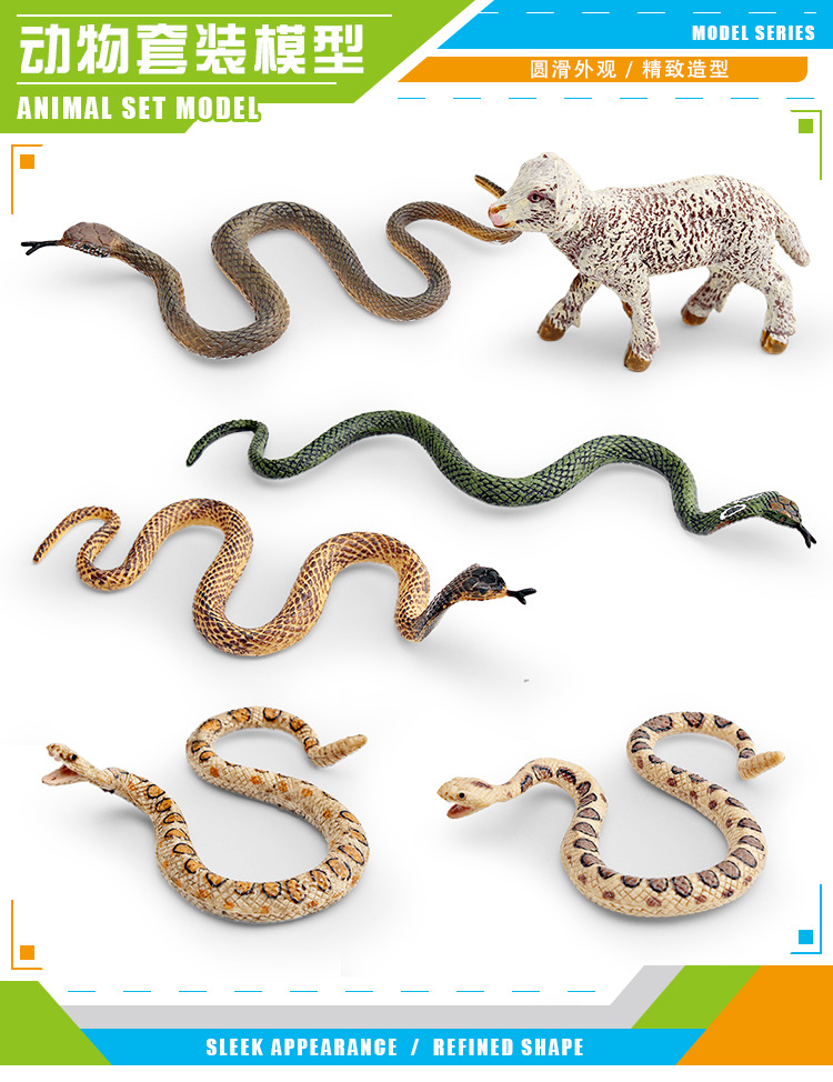 国境を越えた模擬野生動物ソリッドモデルパイソンコブラメリノ羊子供の認知玩具