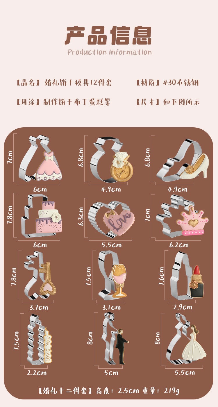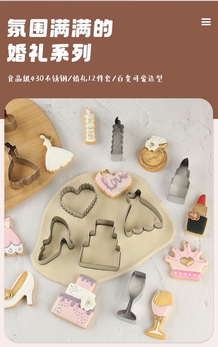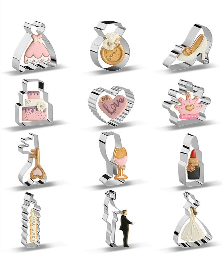 12 ピースステンレス鋼の結婚式のテーマクッキー型 diy ベーキングツールセットバレンタインデーのクッキー切断