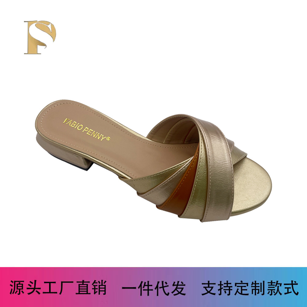 夏の新しいファッションオープントゥマルチカラーデザインステッチアウトドアパーティー低ヒールレディーススリッパのためのクロスボーダー