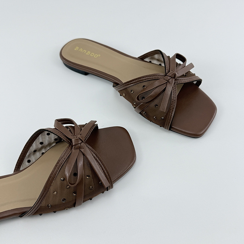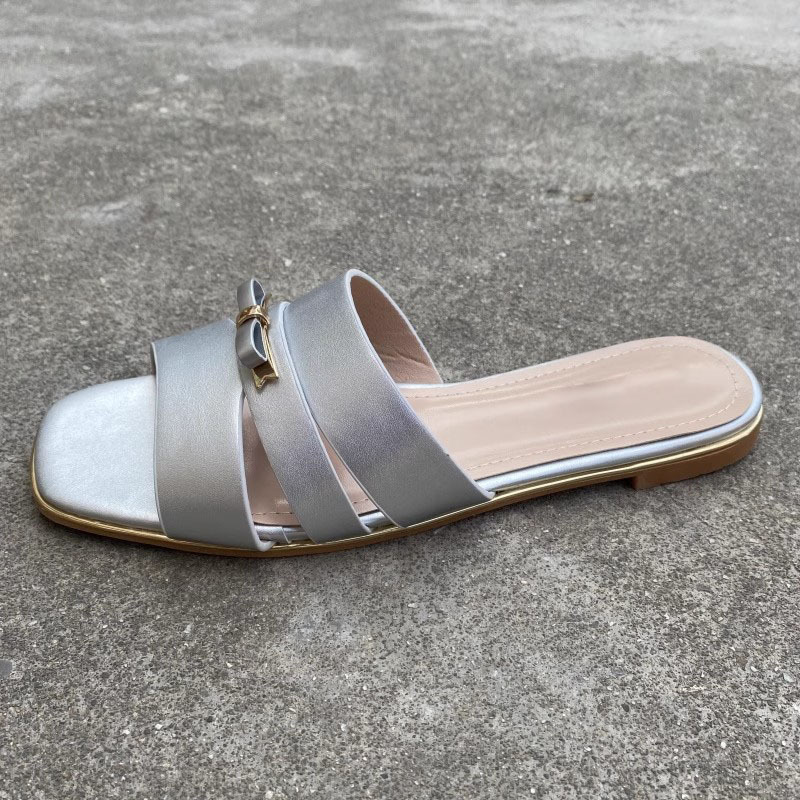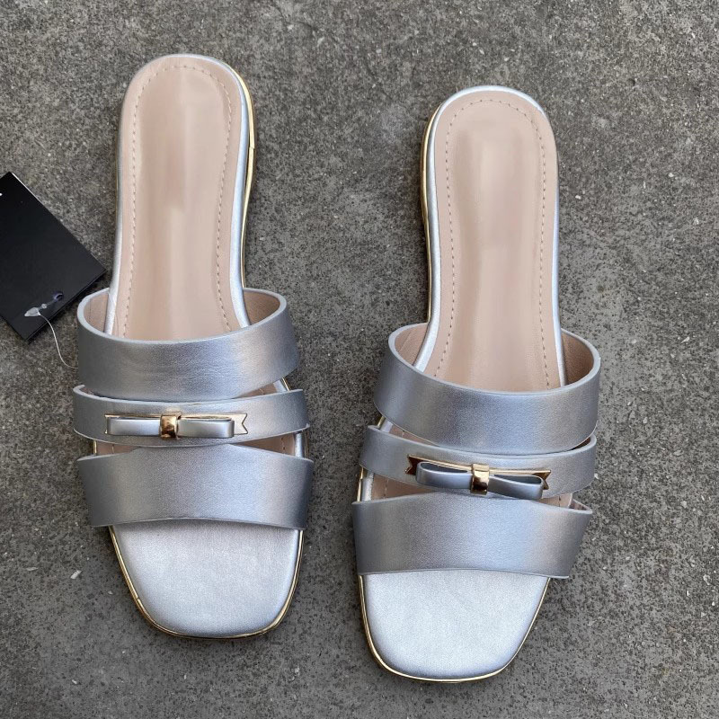 外国貿易の美しい蝶結びのフランスの高級スリッパ、ファッショナブルな新しい夏のスクエアトゥのフラットソールのサンダル