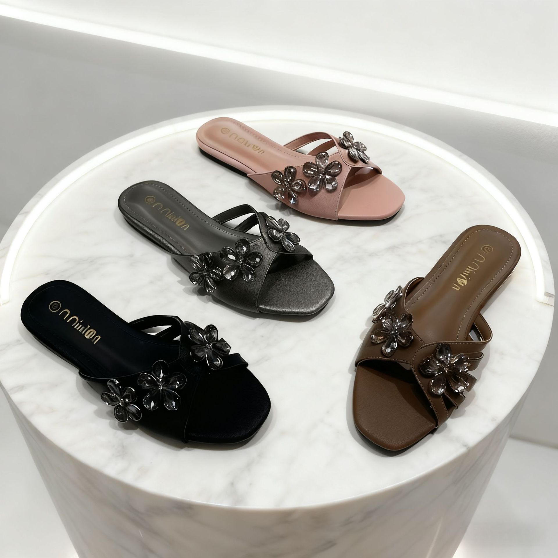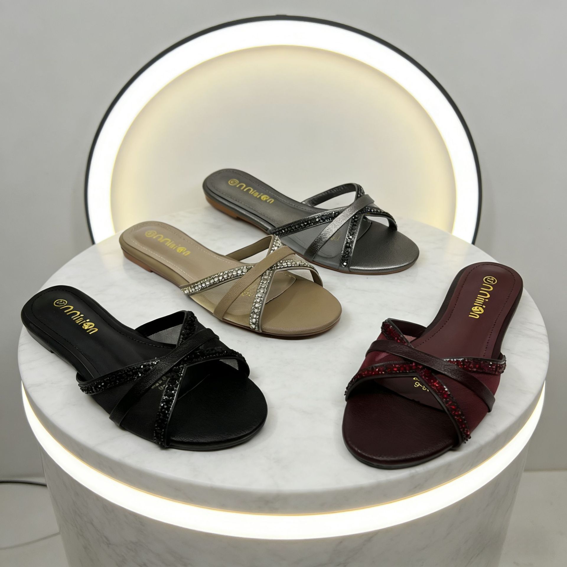 スリッパ フラットサンダル レディース 夏用 アウトドア ラインストーン 高級感 2025年 アフリカ向け レディースサンダル