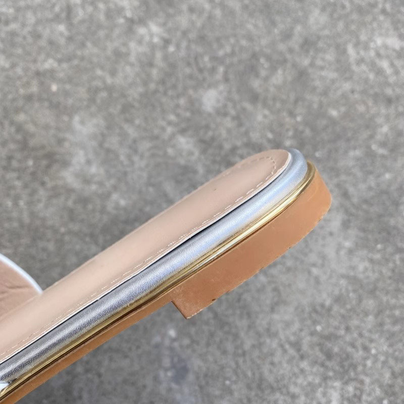 外国貿易の快適なサンダルのファッション的な砂浜の平底の1字の新型の金属は夏の百合の旅行のスリッパの女性を掛けて外に着ます。