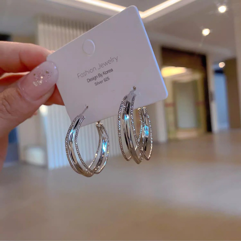 S925銀針金属高級質感多層リングイヤリング欧米風ネット紅博主同金誇張耳飾り女