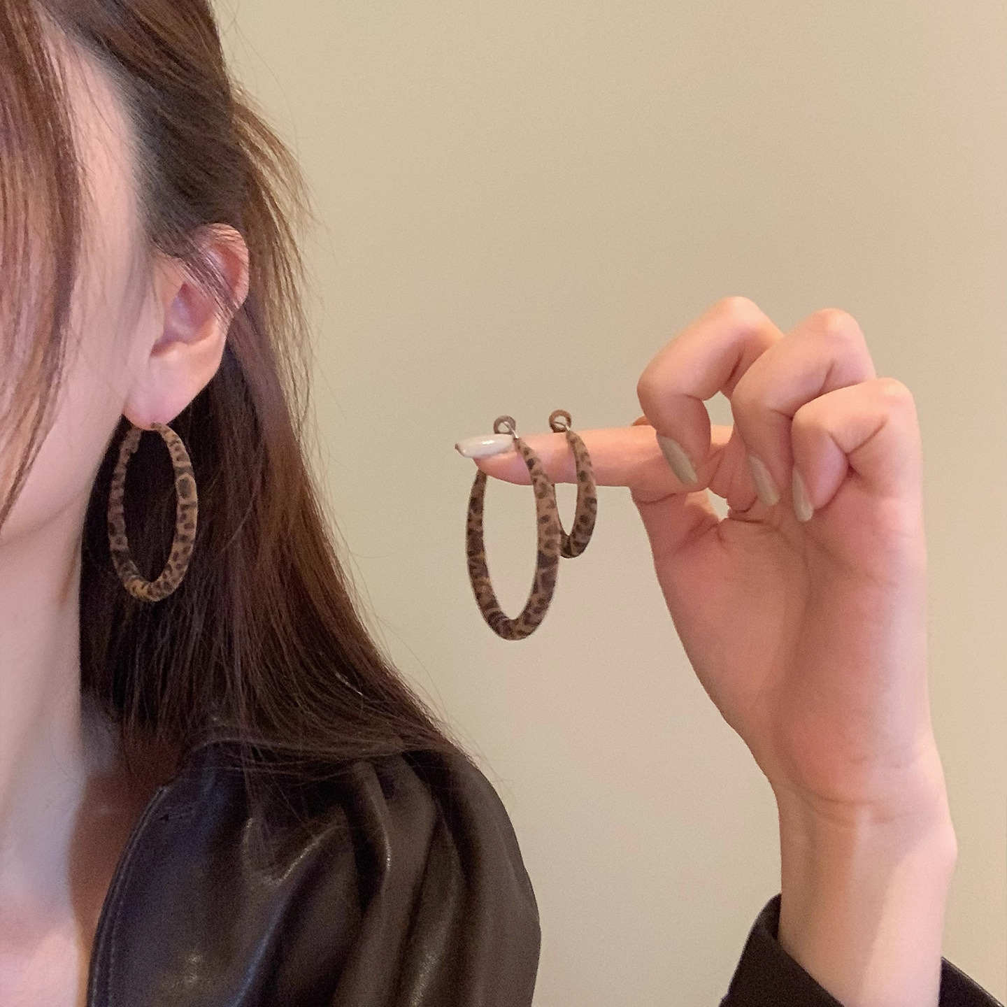 复古豹纹港风圆圈耳环女2025新款爆款时髦夸张耳圈高级感气质耳饰