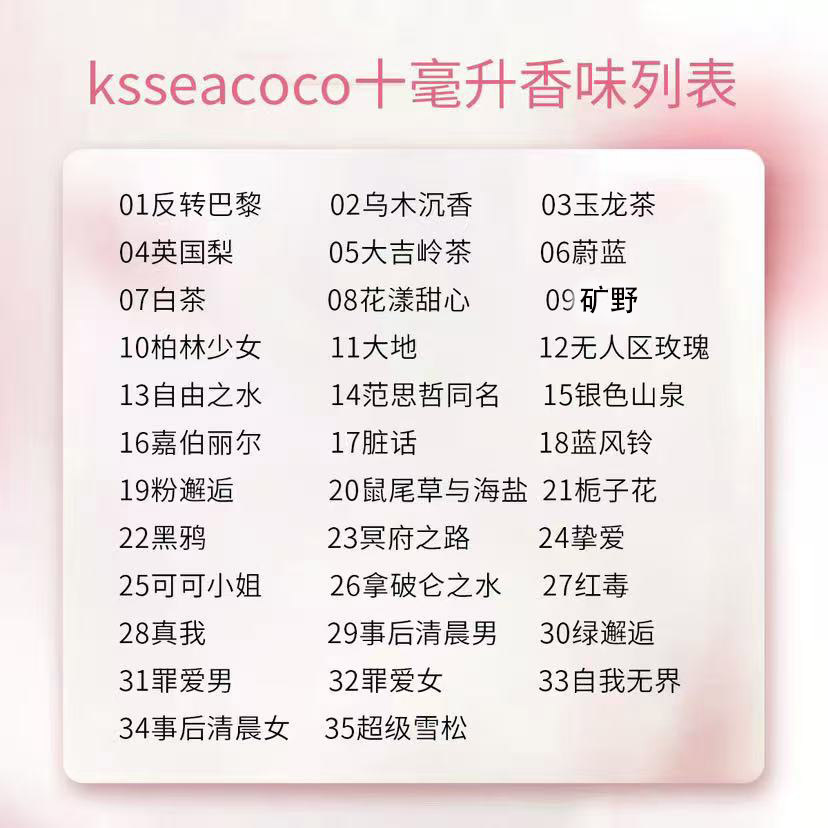 リバーサルパリ,白茶,MISS SWEETHEART,ノーマンズランドのバラ,無料の水,クチナシ,Black Duck,ミス・ココ,ZENMOO,ピンクの出会い,緑の出会い,YULONG TEA,イングリッシュペアー,セージと海塩,青い風鈴,ウード沈香,Gabrielle,ダージリンティー,アズール,MINING LAND,DADI,同じ名前,汚い言葉,ベルリンの女の子,銀の泉,冥府への道,赤い愛,ナポレオンの水,赤い毒,その後の早朝の男,その後の早朝の女性,Self Unbounded,スーパーシダー,罪深い愛の男,罪深い愛する女の子