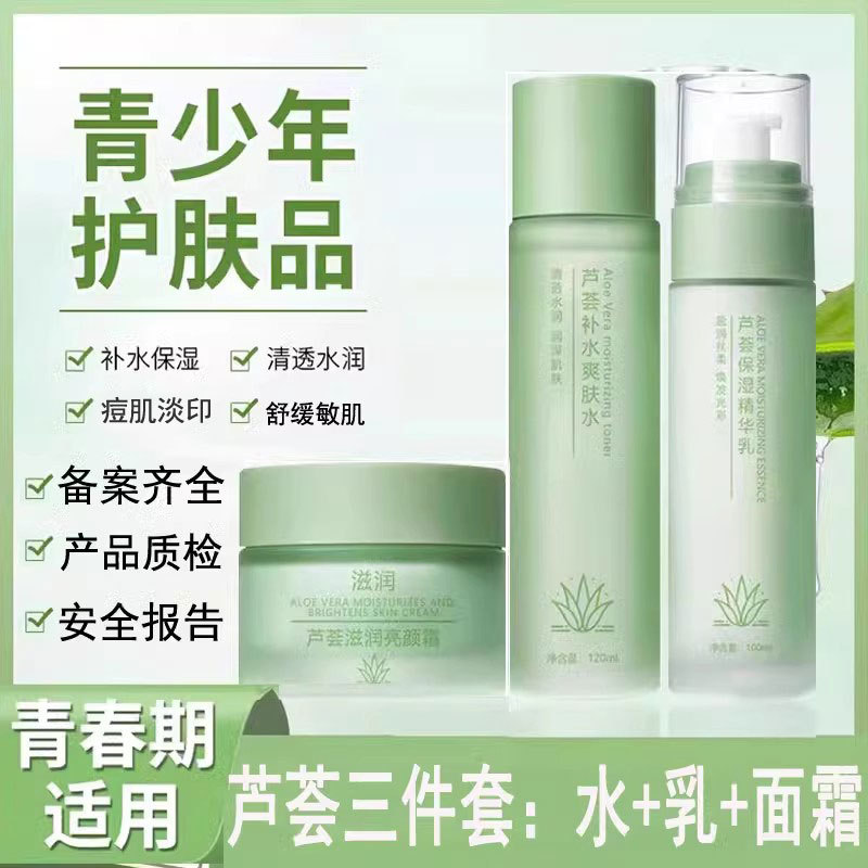 ティーンエイジャーの男の子と女の子、思春期の中学生と高校生のパーティー アロエベラ ウォーター エマルジョン クリーム 水分補給スキンケア製品 3 点セット