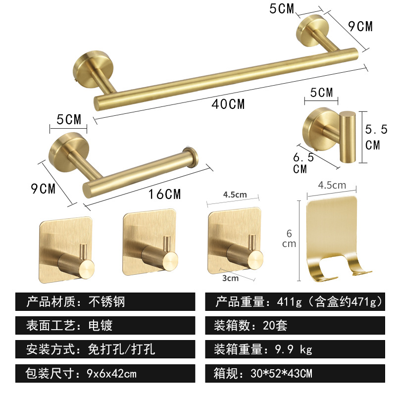 クロスボーダーステンレス鋼タオルリングタオルラック浴室タオルバーペンダントセット5点セットバスルームペーパータオルホルダー
