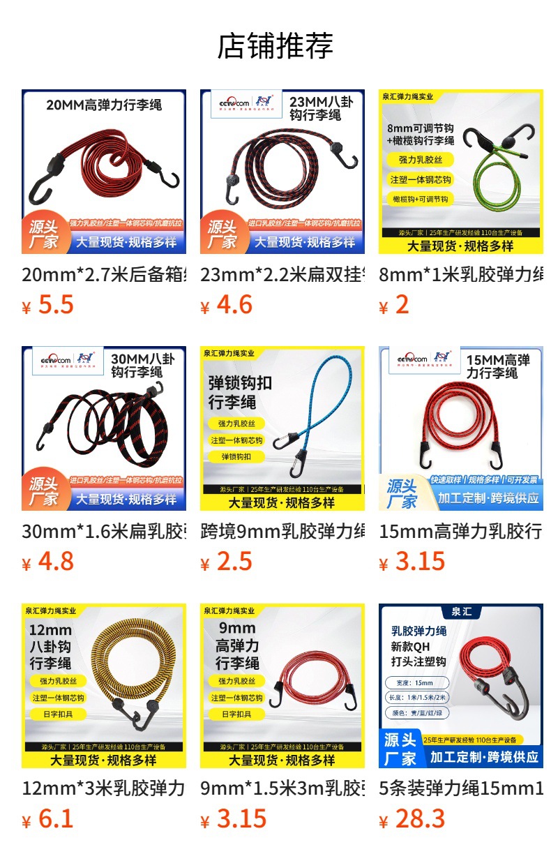 クロスボーダー9mmラテックス弾性ロープ丸荷物ロープスプリングロックバックル付き弾性バンド高弾性バンド